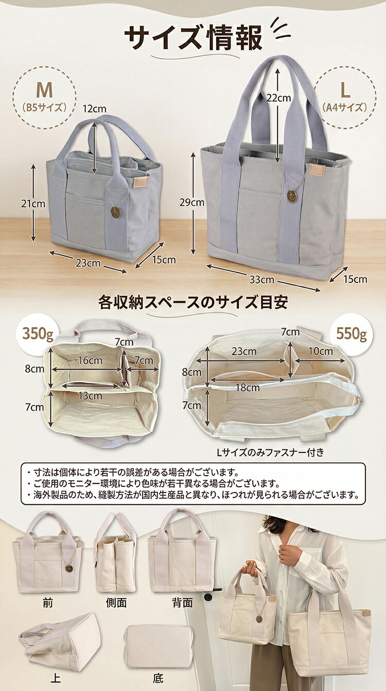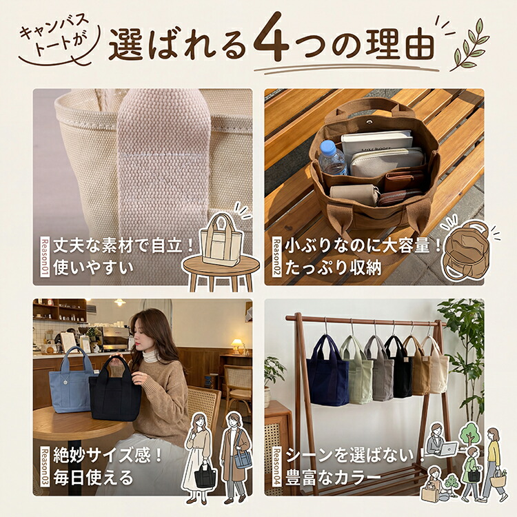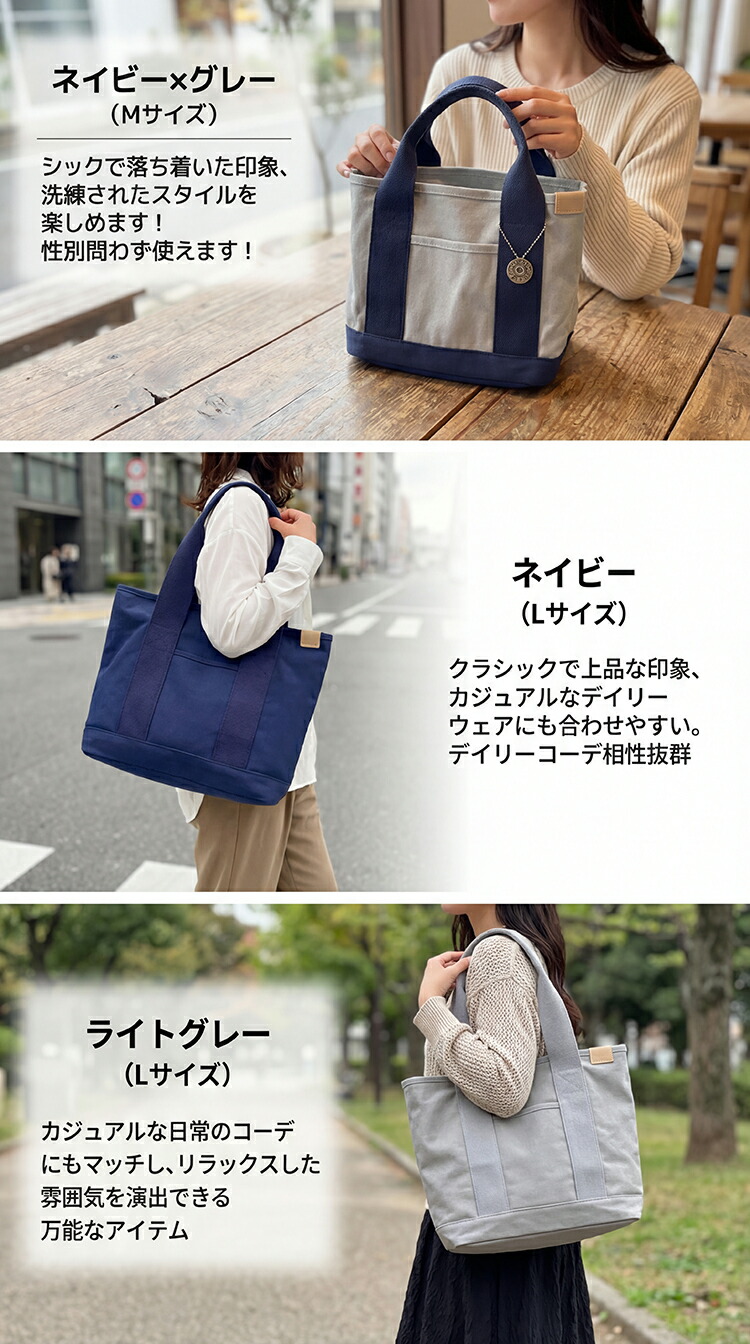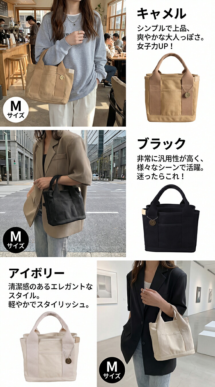 トートバッグ レディース キャンバス バッグ レディースバッグ トートバッグ 続々登場 [Mサイズ] [Lサイズ] [アイボリー] [ブラック] [ライトグレー] [ダークグレー] [キャメル] [コーヒーブラウン] [カーキ] [ピンク] [ネイビー] [グリーン] [ブラックxホワイト] [ネイビーxホワイト] [ネイビーxグレー]