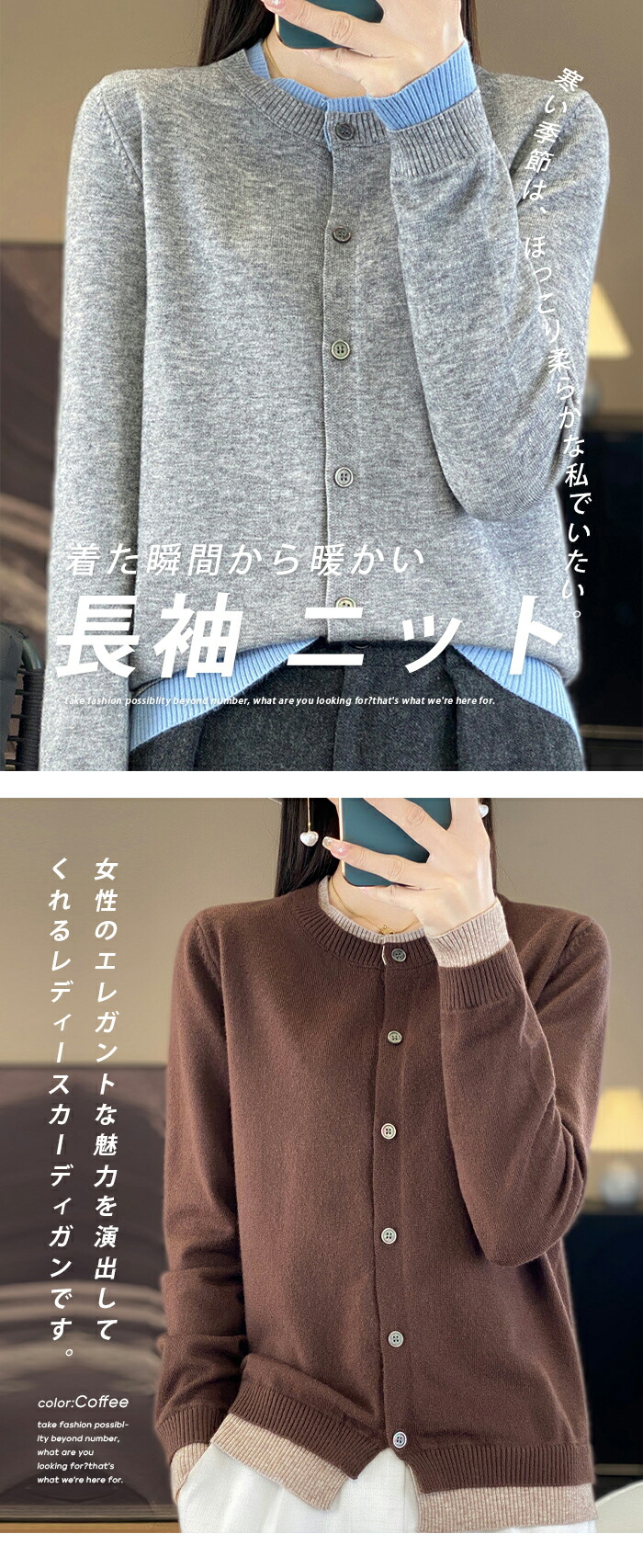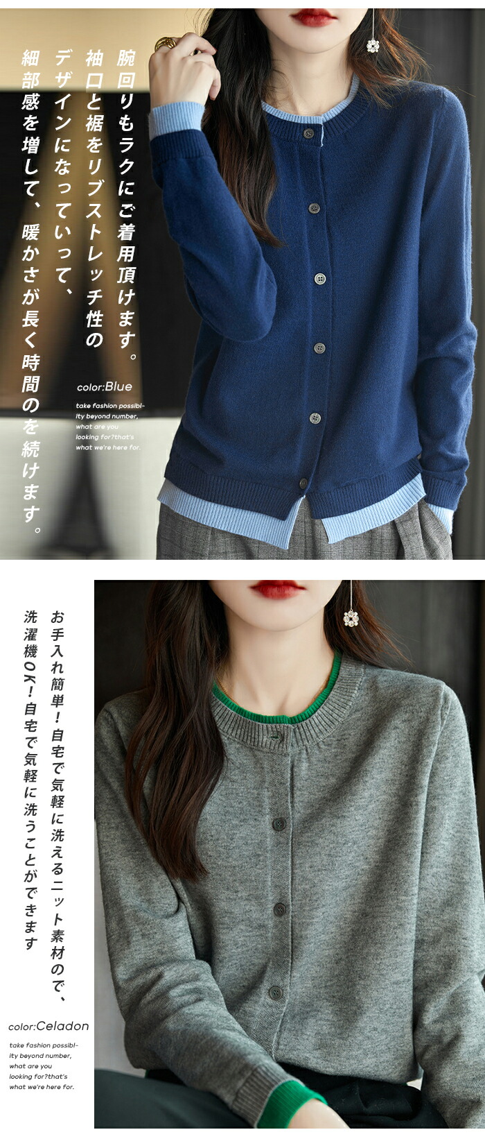 カーディガン 長袖 ニット レイヤード トップス カーディガン ボレロ 新作 ブルー レッド ブラック コーヒー サックス セラドン グレーピンク M L XL 2XL
