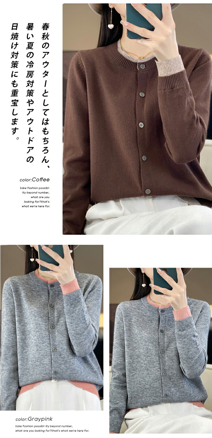 ベーシックなカーディガンは秋口や春先の寒さ対策にはもちろん、夏の冷房対策や日焼け対策にも最適です。