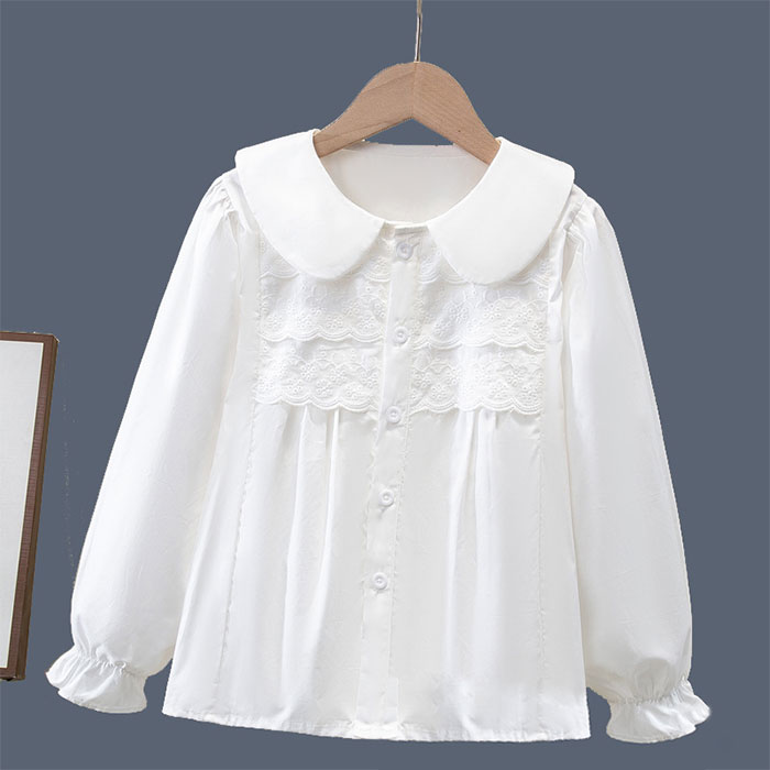女の子 シャツ フォーマル 子供 ブラウス 4タイプ 長袖 シャツブラウス レース ボウタイブラウス スカラップ トップス キッズ ワイシャツ ボーダー フリル 縁取り ユニフォーム スーツインナー