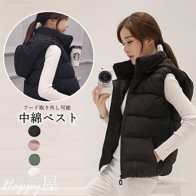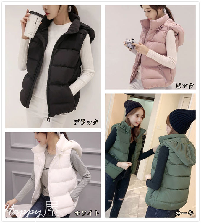 ベスト レディース 中綿ベスト フード トップス ベスト 豊富な品揃え ホワイト ブラック ピンク カーキ M L XL 2XL 3XL 4XL