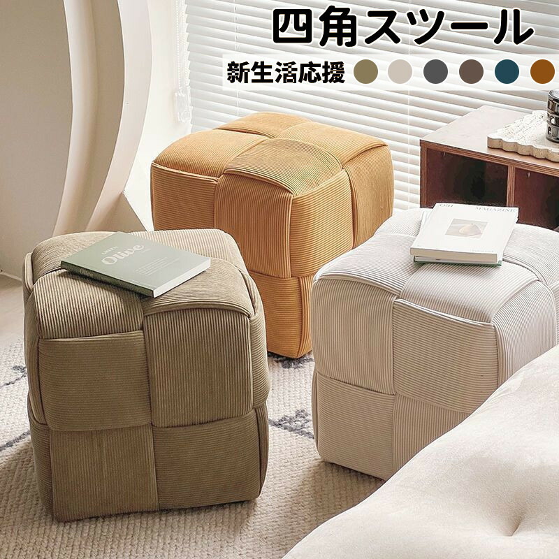 スツール 木製 座椅子 正方形 四角 グリーン オフホワイト グレー カーキ ブルー ブラウン 28*28*28cm 38*38*38cm