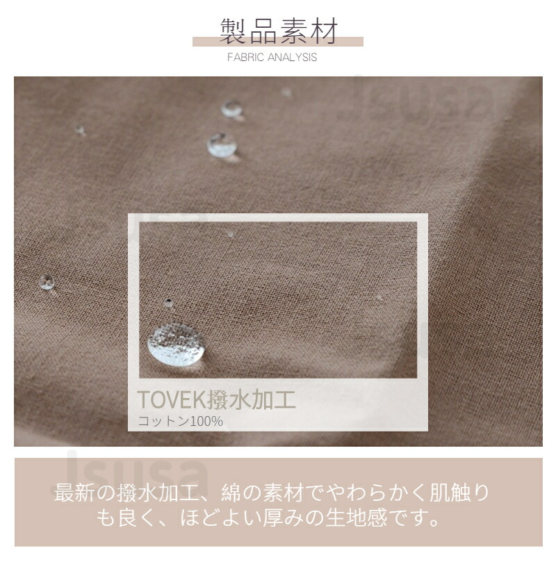 製品は撥水加工、汚れにくくコットン素材を採用し、お手入れもカンタン!シワになりにくいし通気性も抜群!