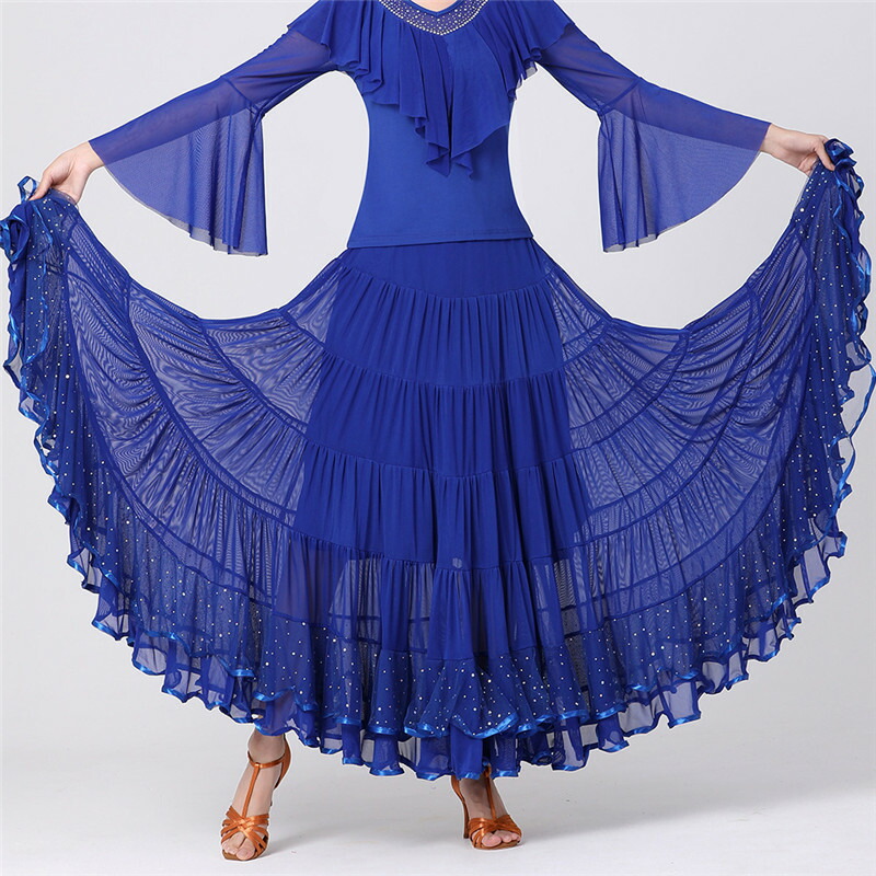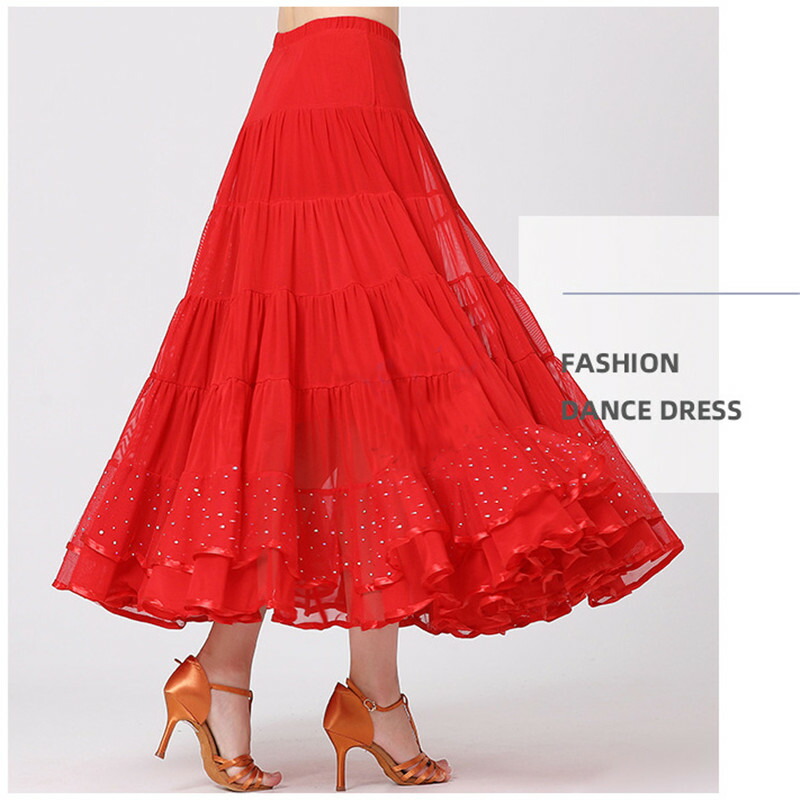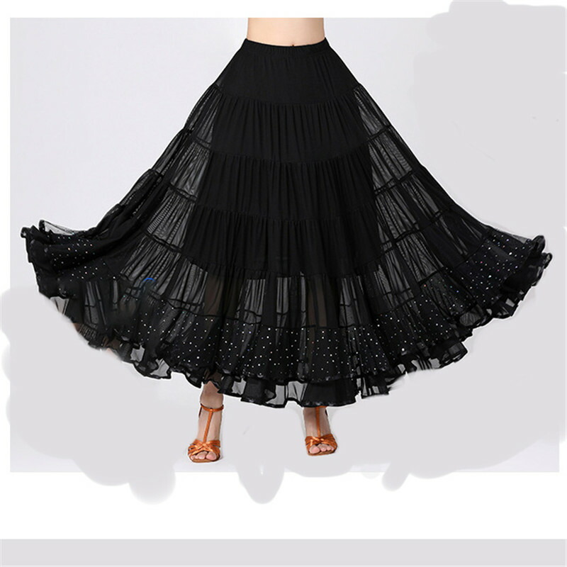 ダンススカート ボリューム 社交ダンス 体操 ダンス フラメンコ スカート 早い者勝ち ブラック レッド パープル ブルー M L XL
