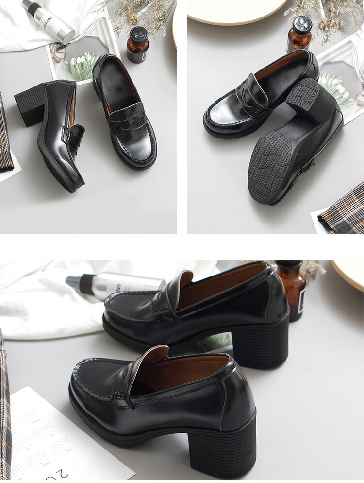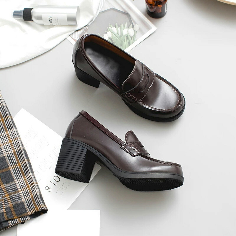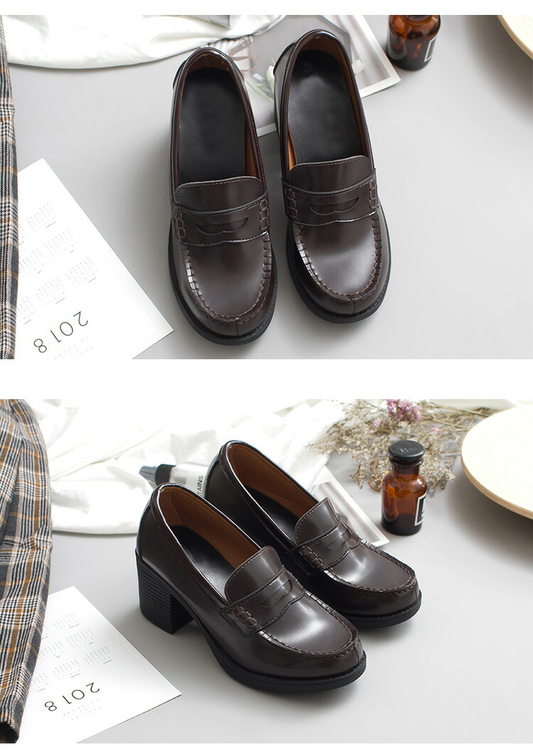 6cmヒール 厚底 ローファー 学生 靴 早い者勝ち ブラック ブラウン 22.0cm 22.5cm 23cm 23.5cm 24cm 24.5cm