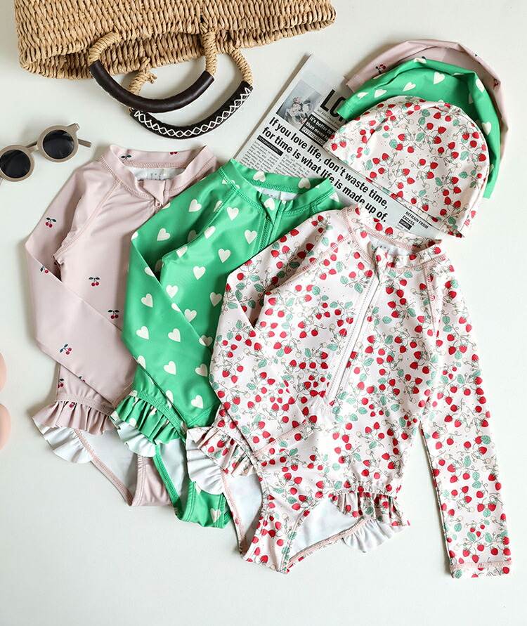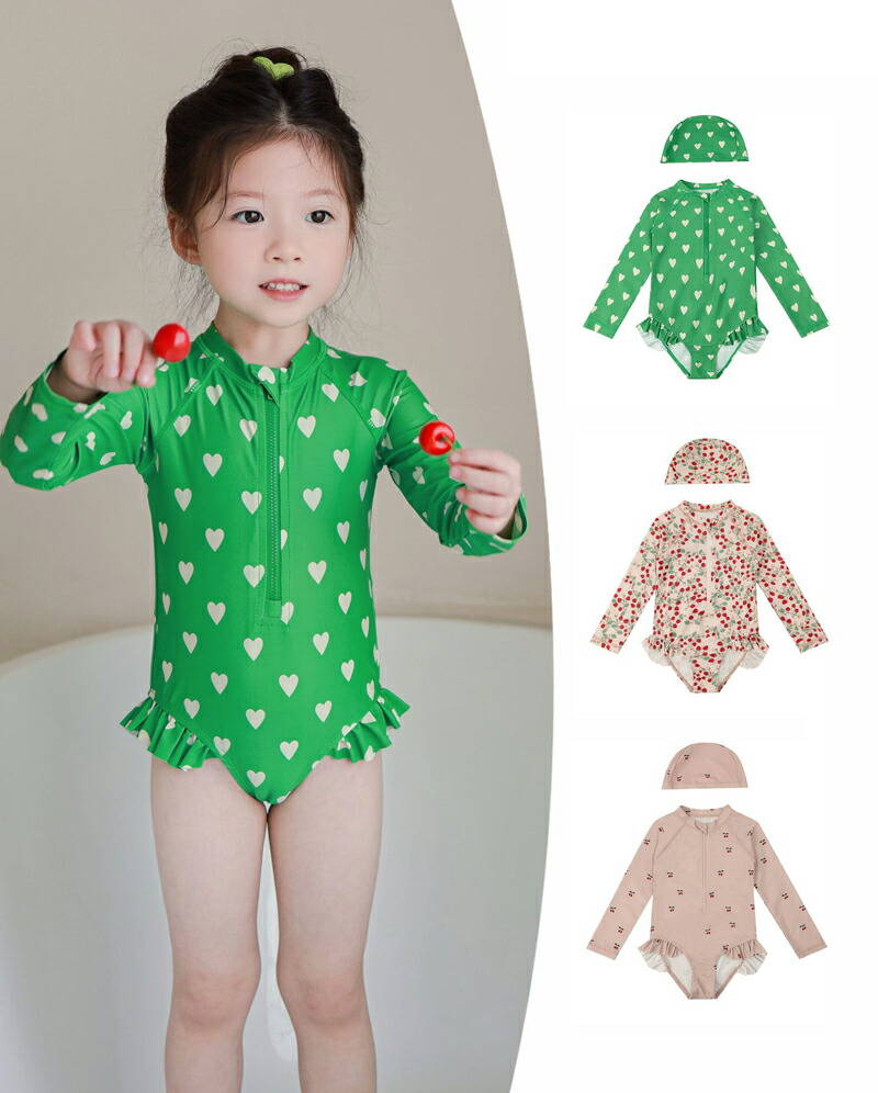 キッズ 水着 女の子 ワンピース 子供 キッズ ベビー マタニティ 続々登場 チェリー ハート いちご 80cm 90cm 100cm 110cm 120cm 130cm