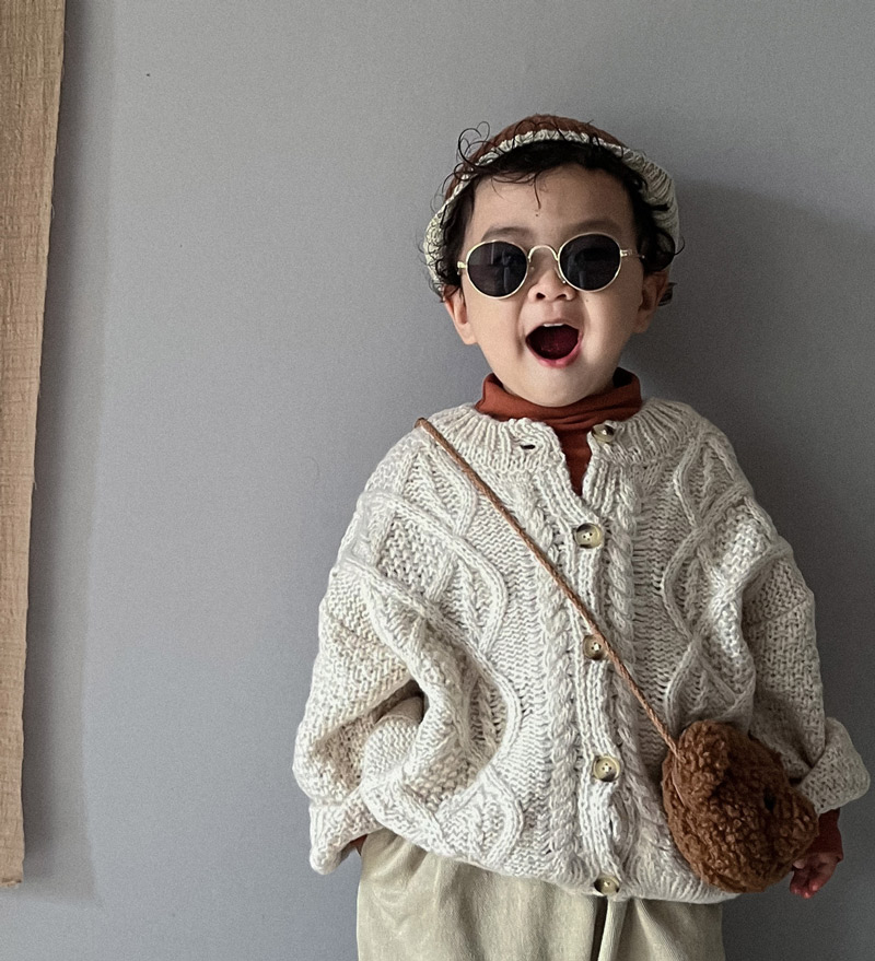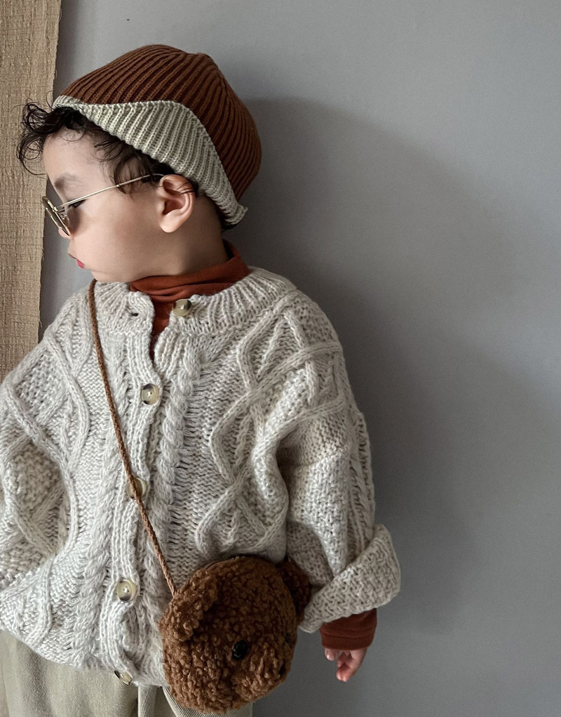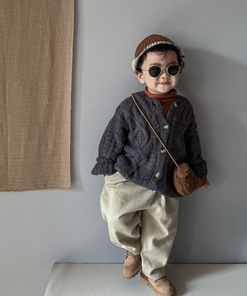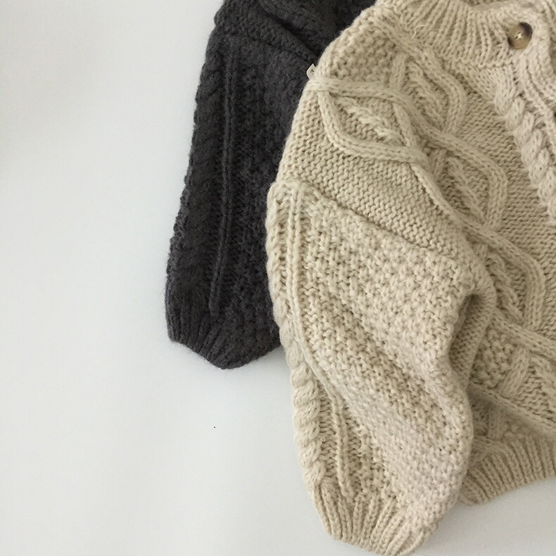 ケーブルニットカーディガン 韓国子供服 キッズ トップス セーター 早い者勝ち チャコール ベージュ 80cm 90cm 100cm 110cm 120cm 130cm