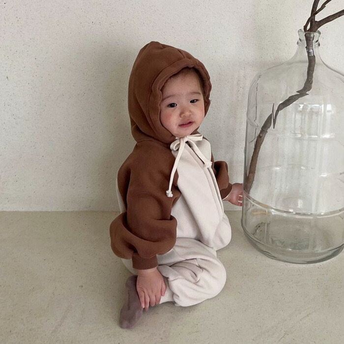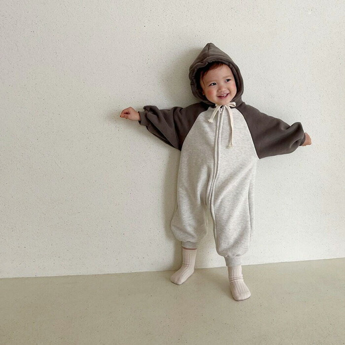 ベビー ロンパース トレーナーロンパー ベビー ベビー服 ファッション カバーオール ロンパース 通販 ダークグレー ブラウン 66cm 73cm 80cm 90cm