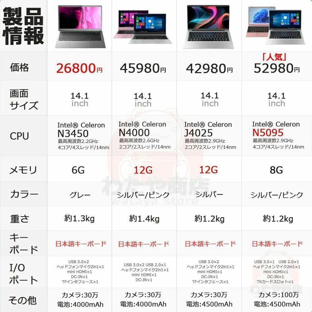 ノートパソコン 新品windows11 14.1インチ N3450 6G グレー 14.1インチ N4000 8G シルバー 14.1インチ N4000 12G シルバー 14.1“ N5095 8G シルバー【人気】 14.1インチ N5095 8G ピンク 14.1インチ J4025 12G シルバー 15.6インチ N4020 8G グレー 15.6 N5095 16G シルバー【推奨】 15.6インチ N5095 16G ピンク 15.6インチ N5095 32G シルバー 15.6インチ N5095 32G ピンク 15.6インチ N95 16G シルバー 15.6インチ N95 16G ピンク 15.6インチ N95 32G シルバー 15.6インチ N95 32G ピンク 15.6インチ Core i3 12G シルバー 15.6インチ Core i5 16G シルバー 15.6インチ Core i7 16G シルバー 15.6インチ Core i9 32G シルバー 128GB 256GB 512GB 1TB 2TB