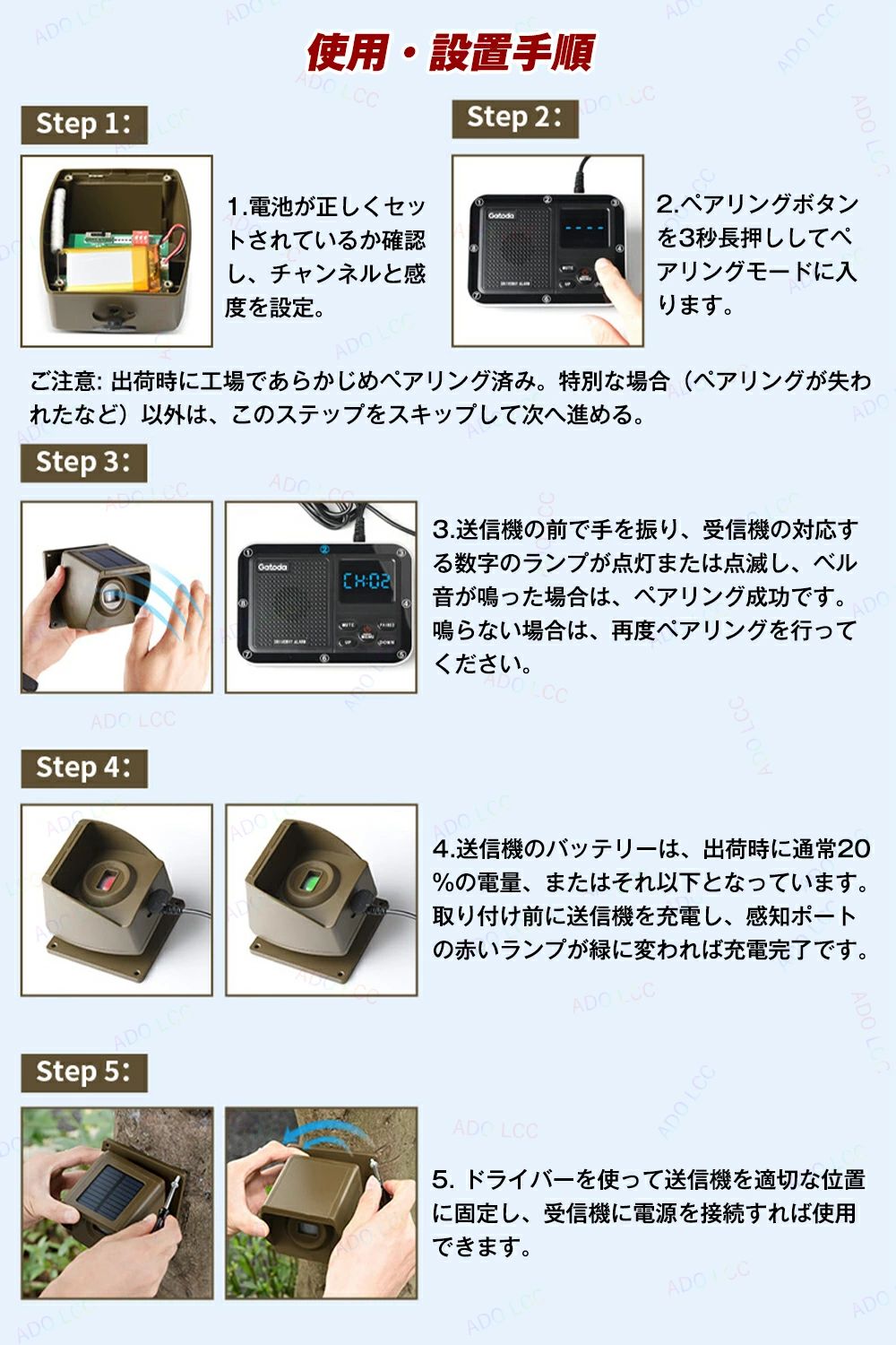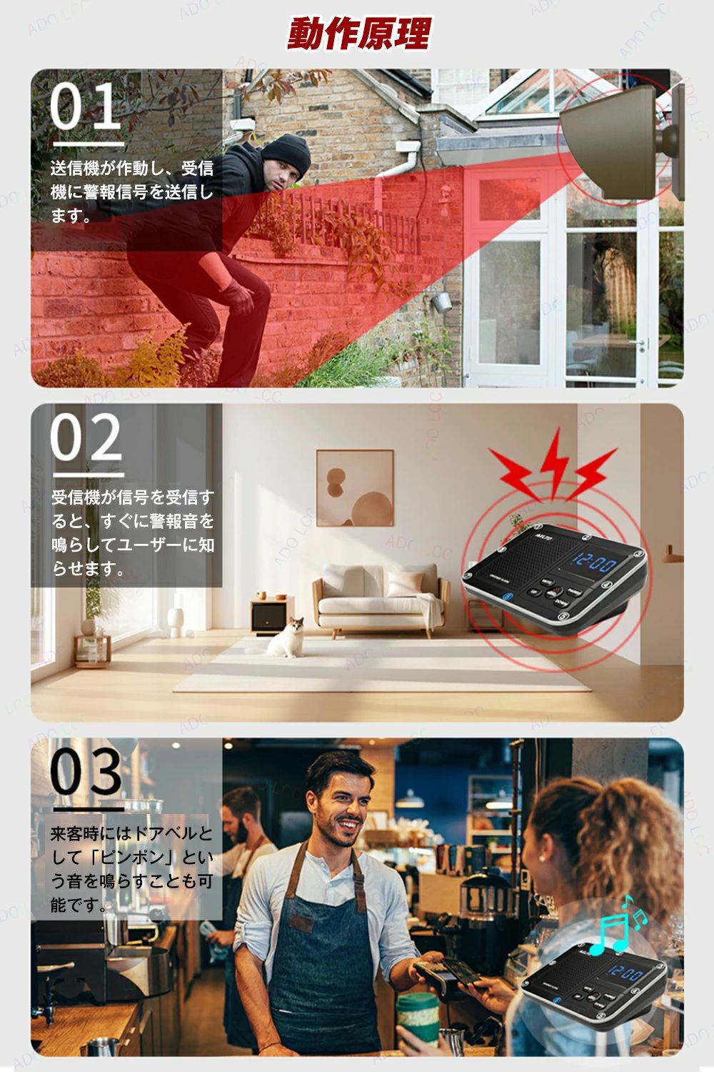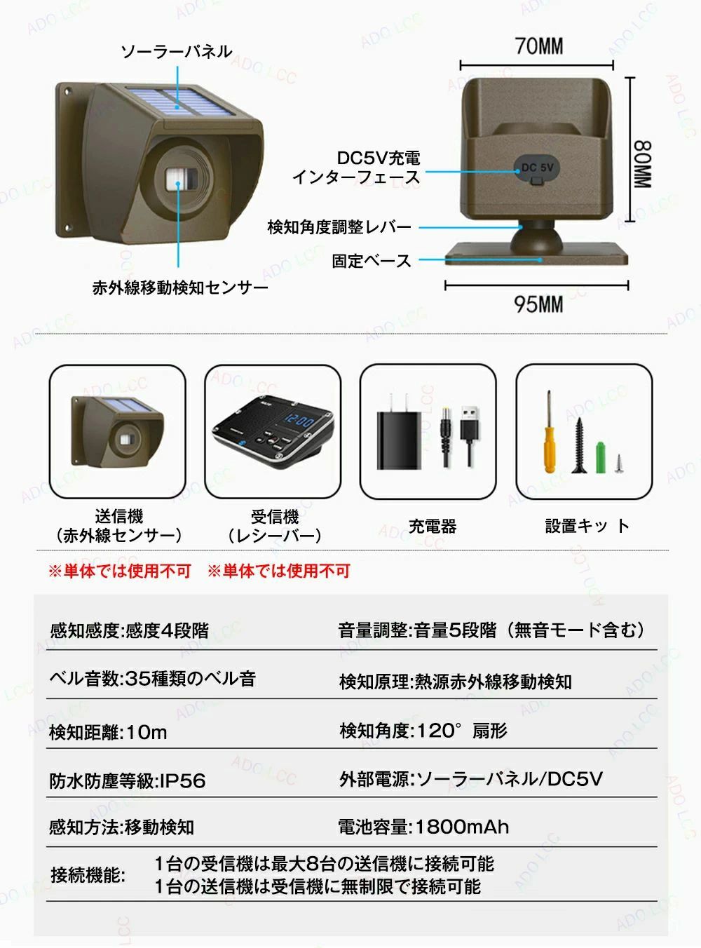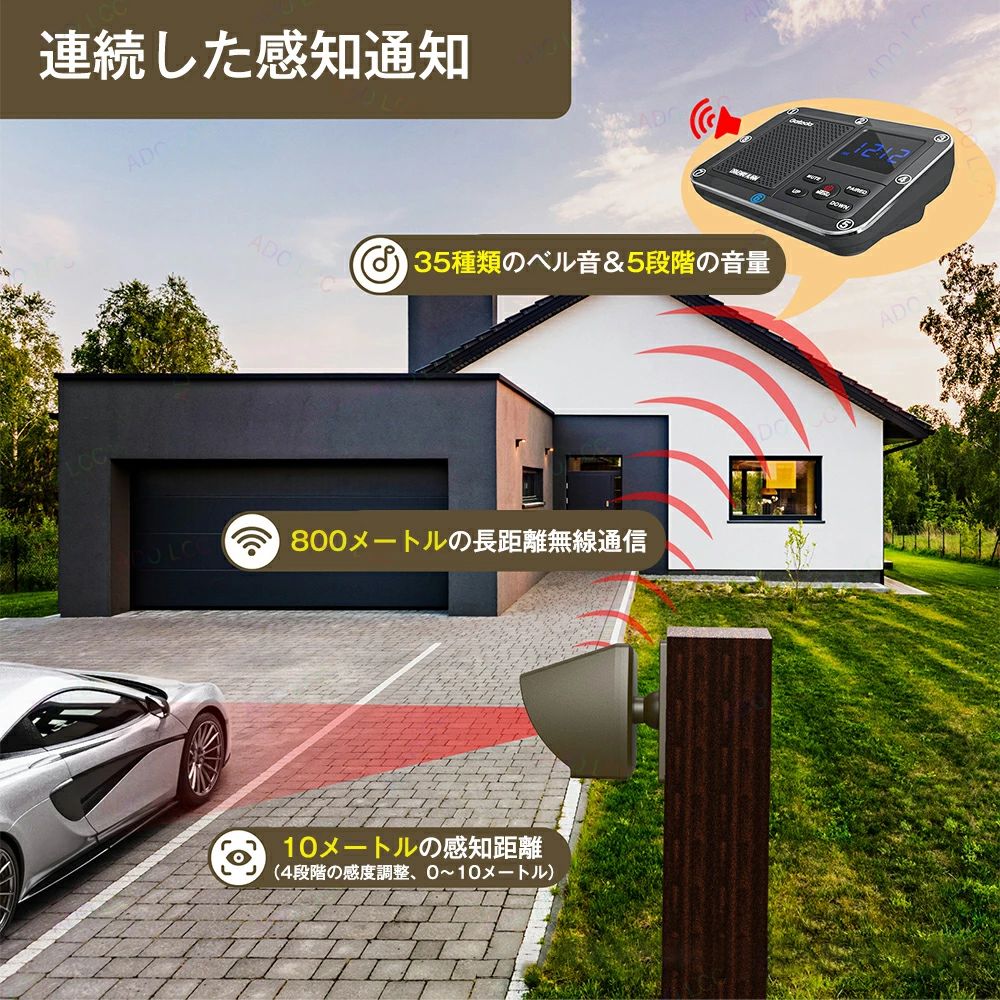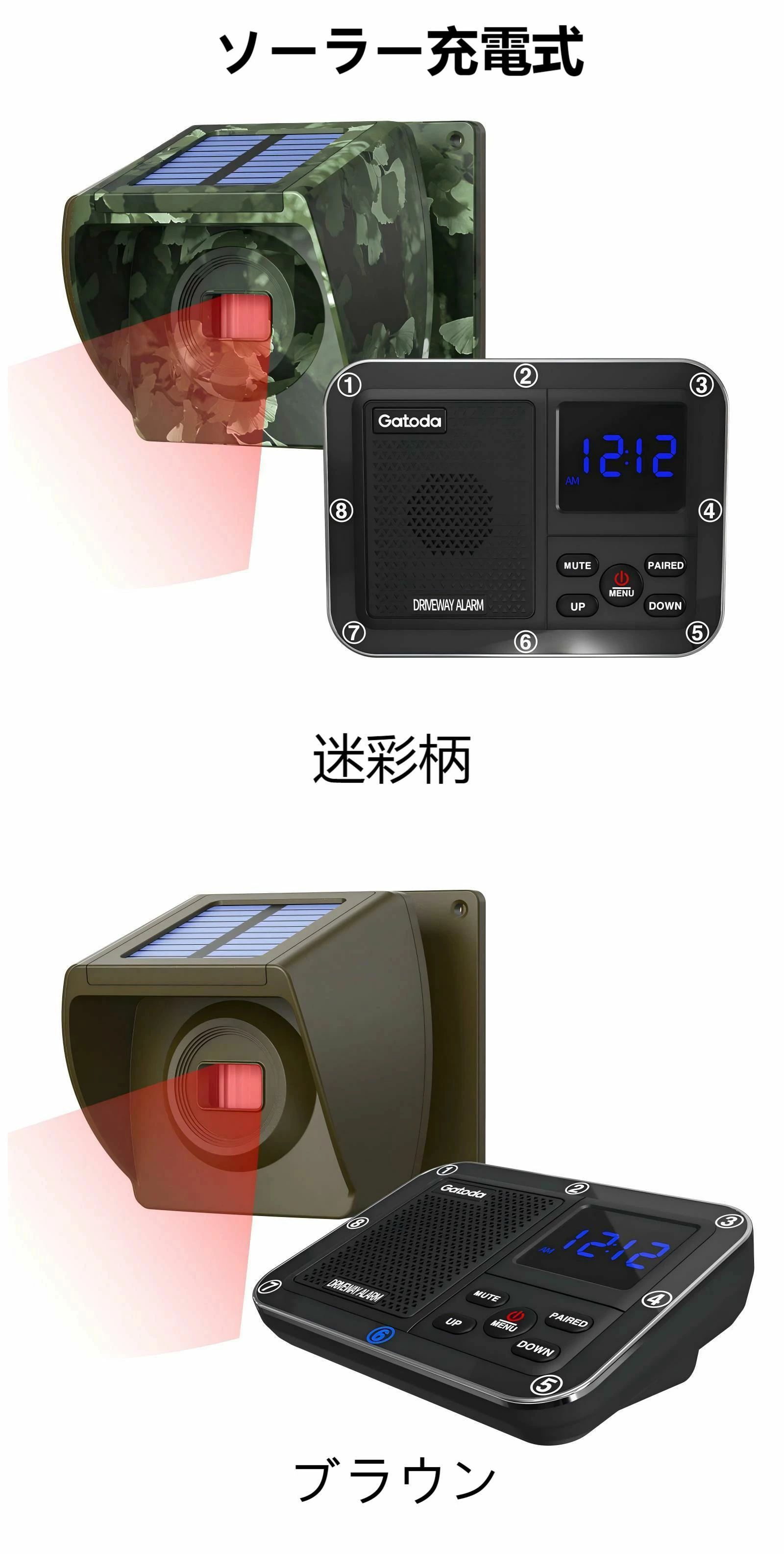 赤外線アラームセンサー 人感センサーチ ブラウン( 送信機1個 受信機1個) 迷彩柄( 送信機1個 受信機1個)