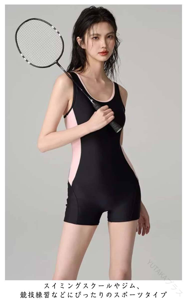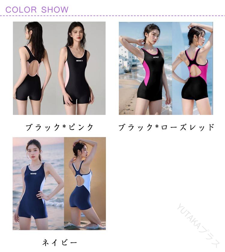 女性用 競泳 水着 レディース ワンピ 水泳 フィットネス水着 特集 ブラック*ピンク ブラック*ローズレッド ネイビー S M L XL