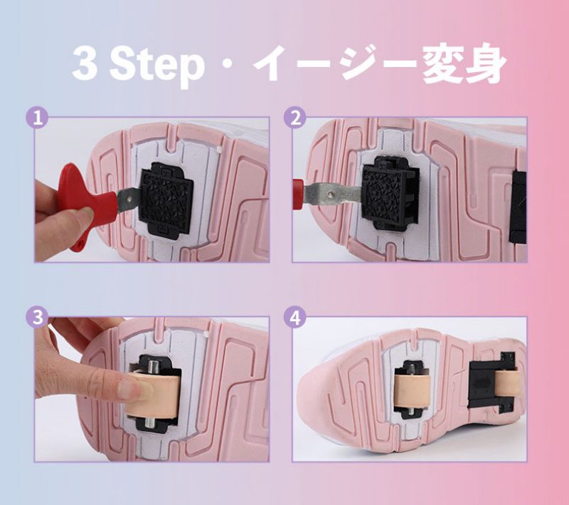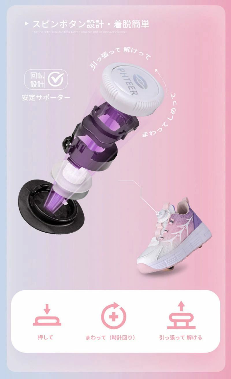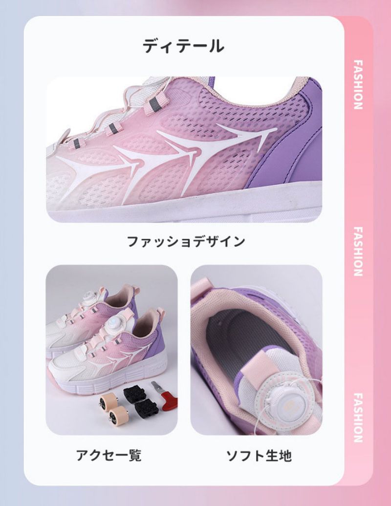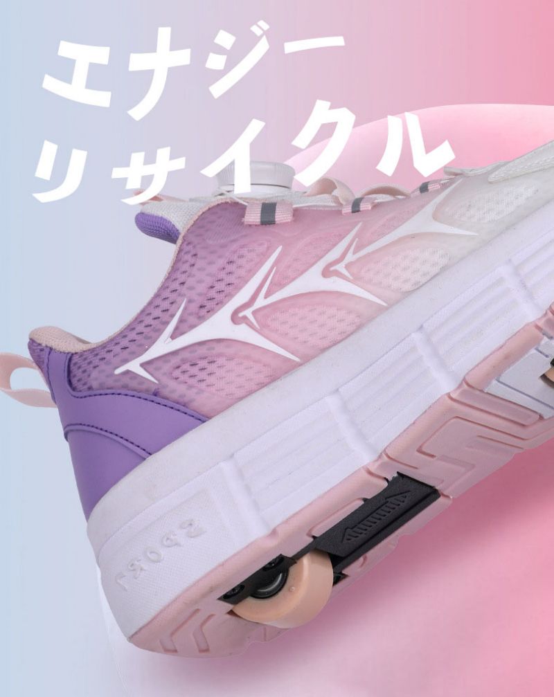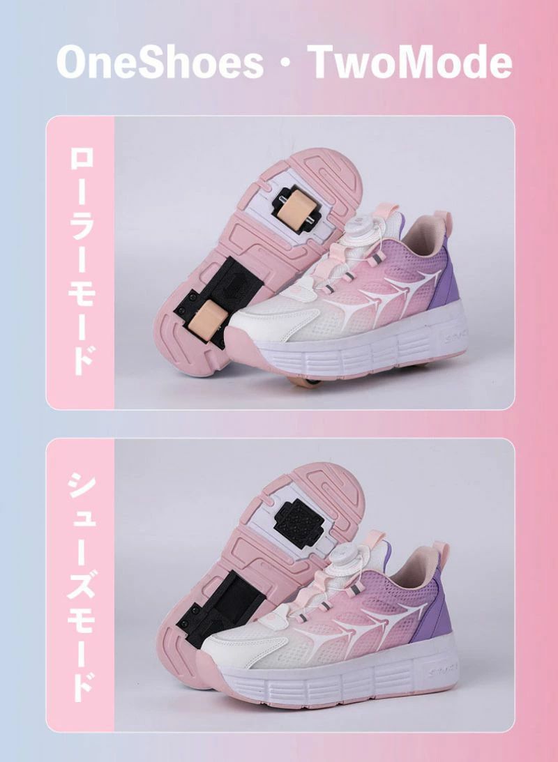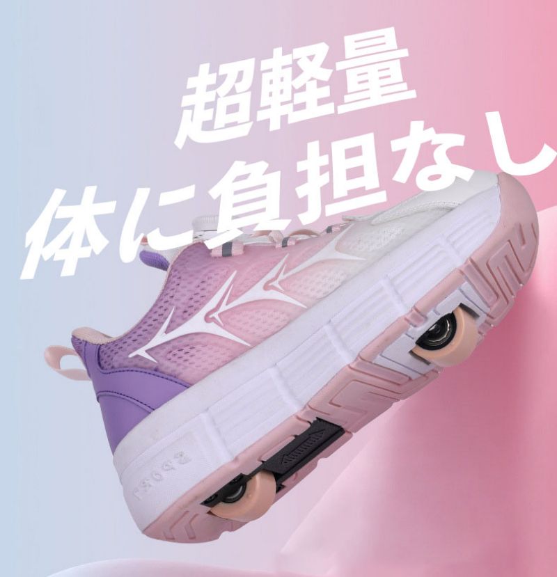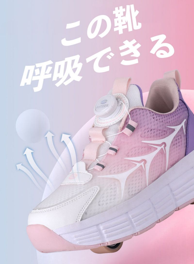 ローラーシューズ ローラースケート 20.5cm~25cm 靴紐フリ 通気 メッシュ ピンク キッズ 子供 メンズ レディース 女の子 男の子 スニ 靴