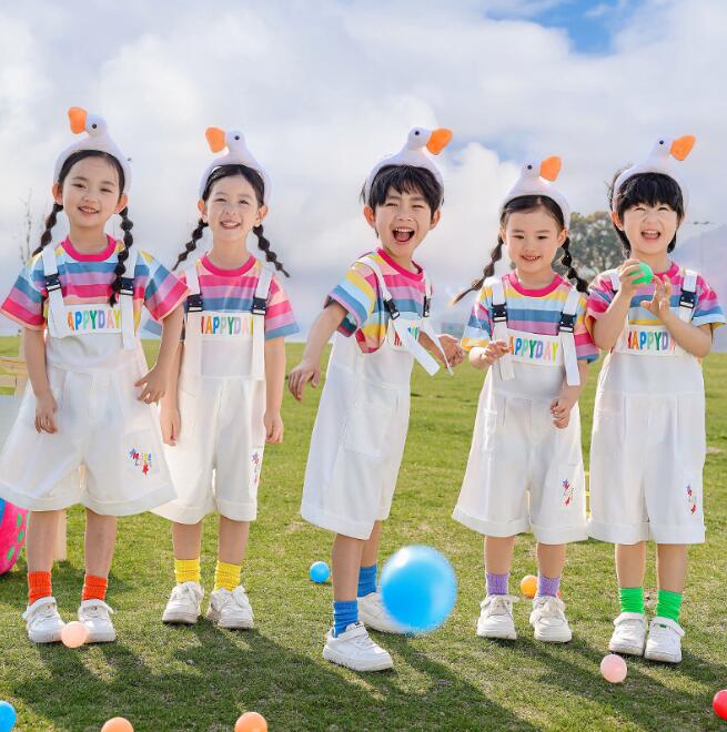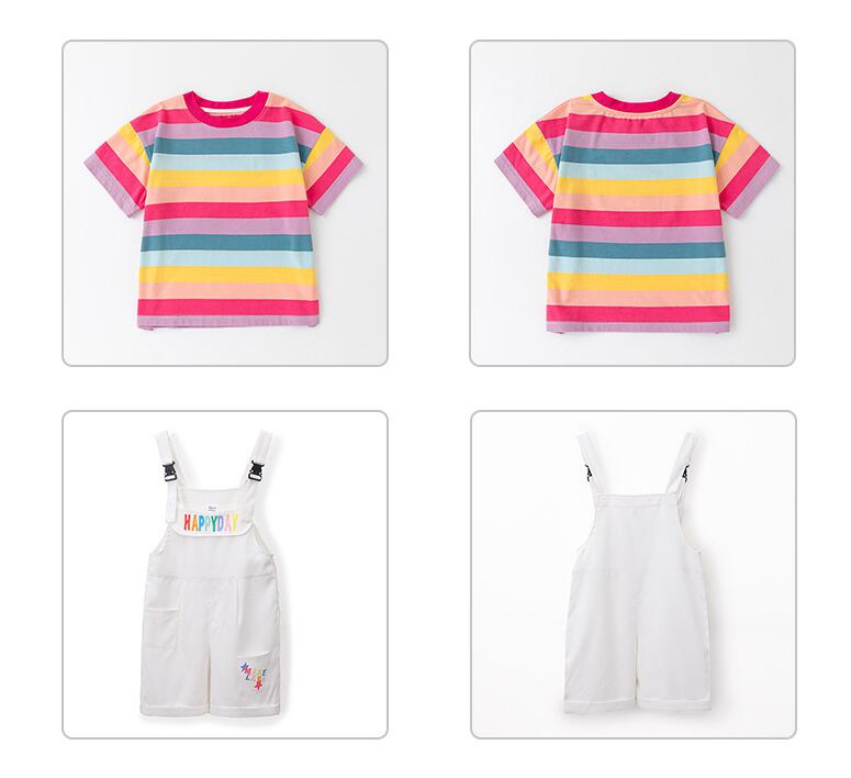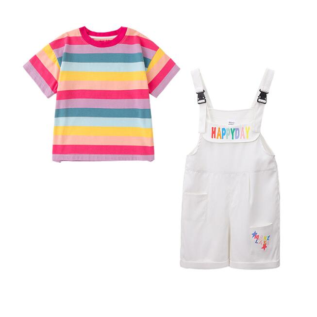 子供 白サロペット カラフル 虹色Tシ キッズ ベビー マタニティ 新登場! パンツ 2点セット 100 110 120 130 140 150 160 170 180