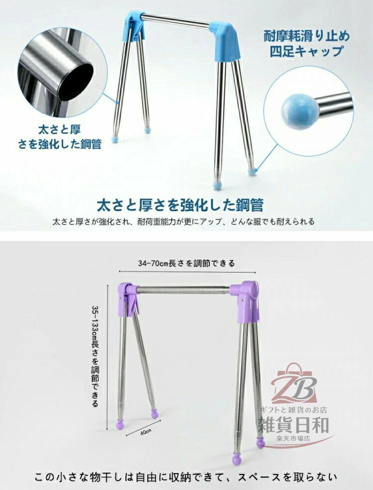 折りたたみ式 伸縮ハンガーラック 室内 ブラック ブルー オレンジ グリーン ピンク バーブル イエロー ブラウン