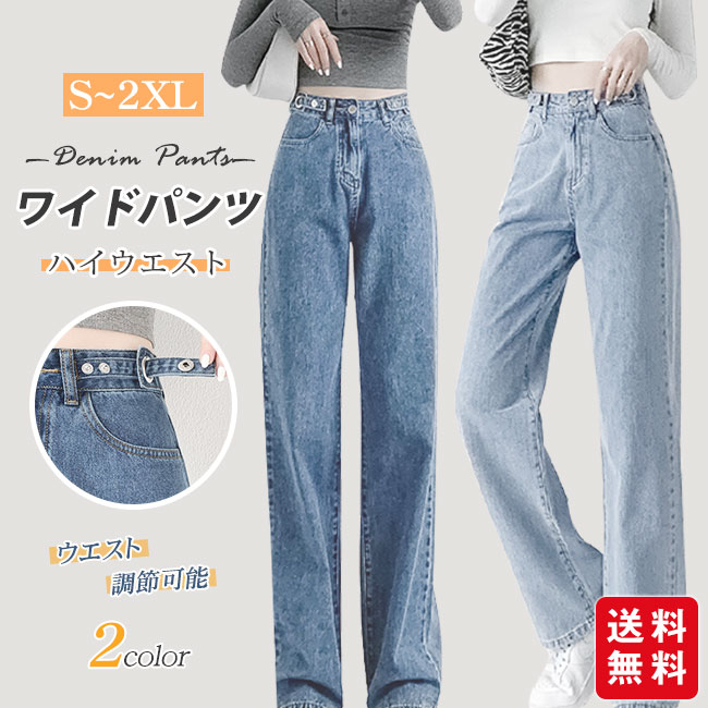 ワイドパンツ デニム ハイウエスト ウ ボトムス パンツ 超目玉商品 ブルーA ブルーB S M L XL 2XL