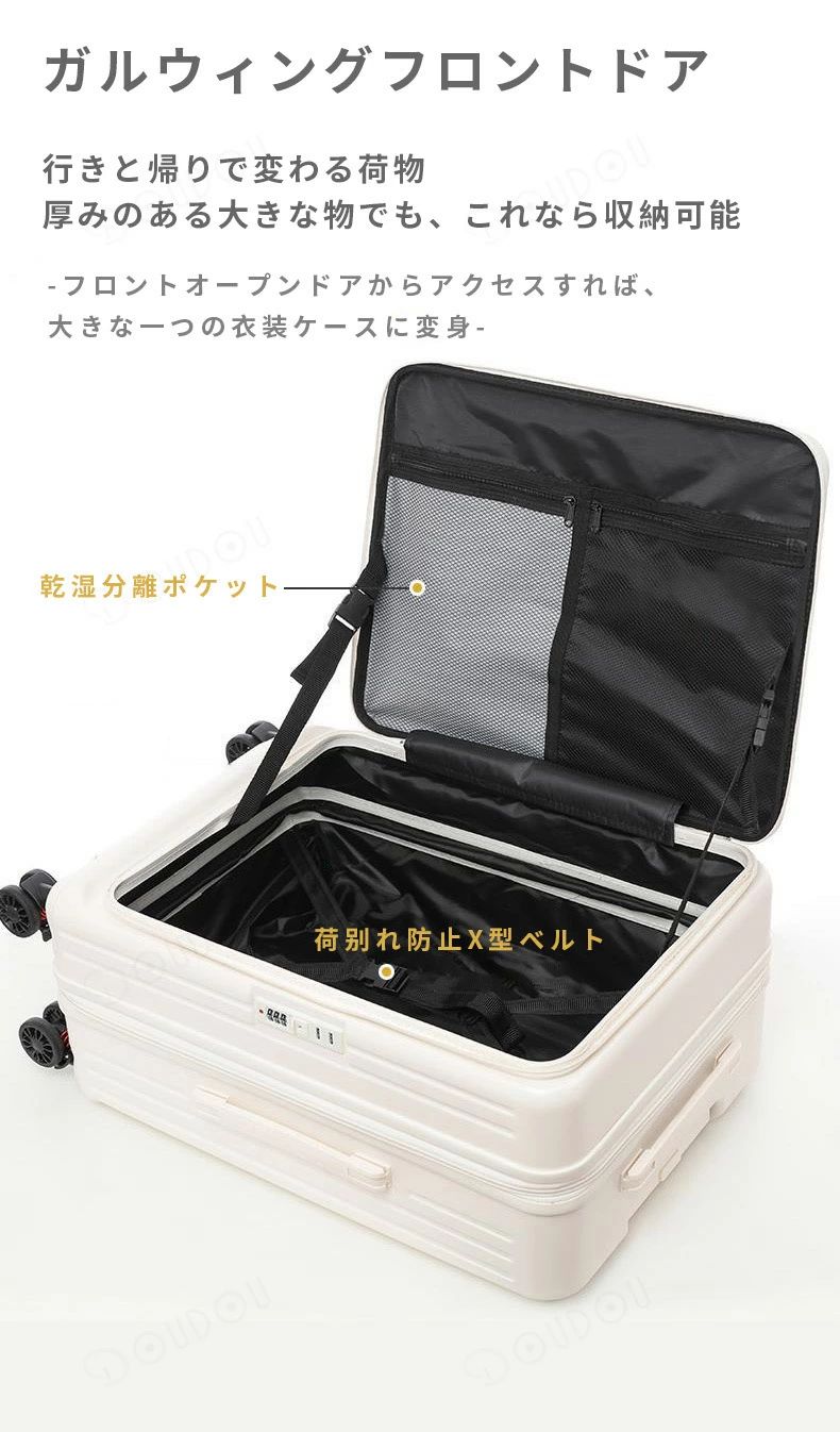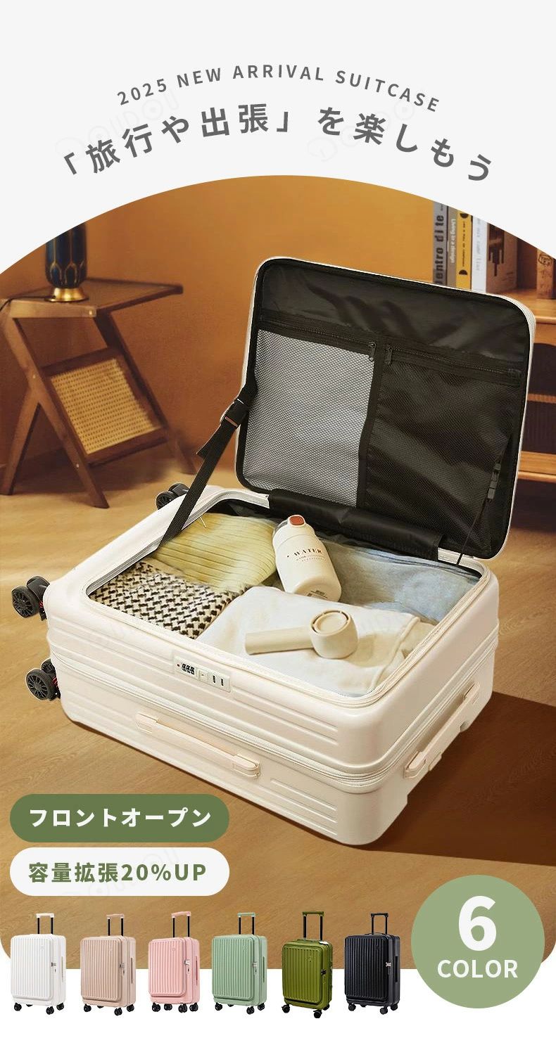 スーツケース キャリーケース 片開き ハード 拡張機能付き フロントオープン 大容量 機内持ち込み 超軽量 ファスナータイプ カップホルダー付き キャリーバッグ 横開き ビジネ YKKファスナーロック