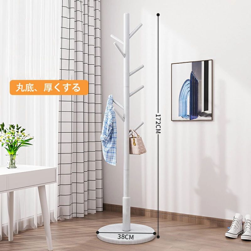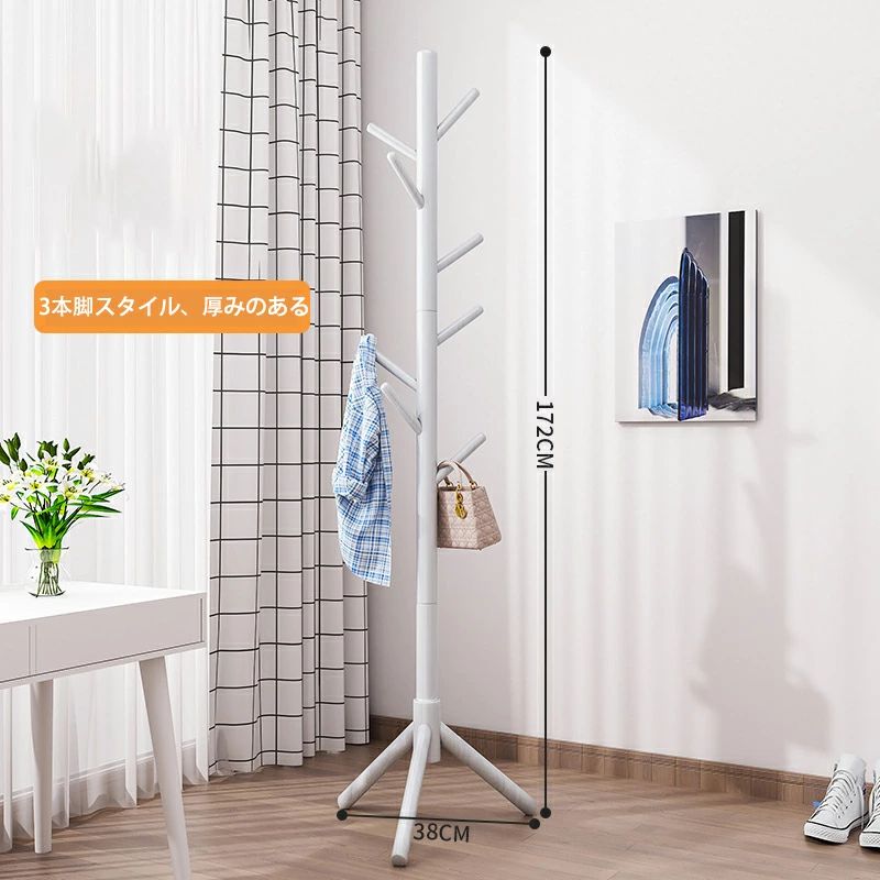 木製 コートハンガー ハンガーラック 木目色 ウォールナット色 アイボリーホワイト 3本の脚と8つのフック ディスク8フック