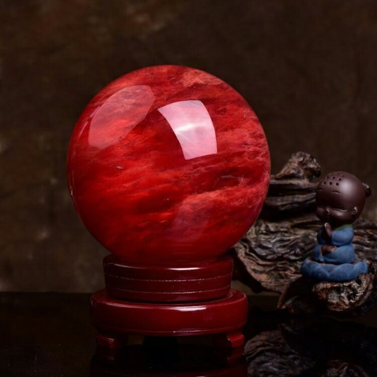 赤水晶 パワーストーン 水晶玉 木製台座 置物 水晶 パワーストーンブレスレット 風水 縁起物 水晶ボール 再起運 レッドクリスタルボール ブラケット 地鎮祭の水晶玉仕事運 恋愛運UP 瞑想 鎮 金運