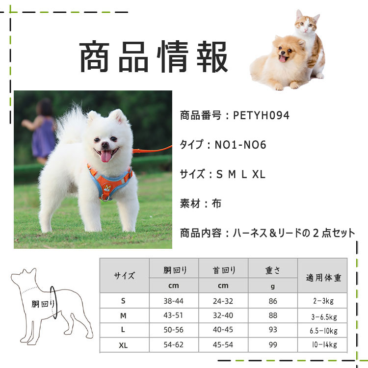 犬用 ハーネス 小型犬用 リード 2点 ペット ペットグッズ 早い者勝ち NO1 NO2 NO3 NO4 NO5 NO6 S M L XL