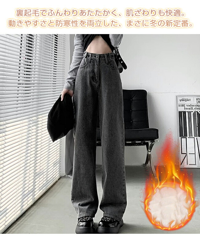 デニムパンツ ストレート 裏起毛 ワイ ボトムス パンツ 続々登場 ダークブルー ライトブルー ブラック XS S M L XL 2XL