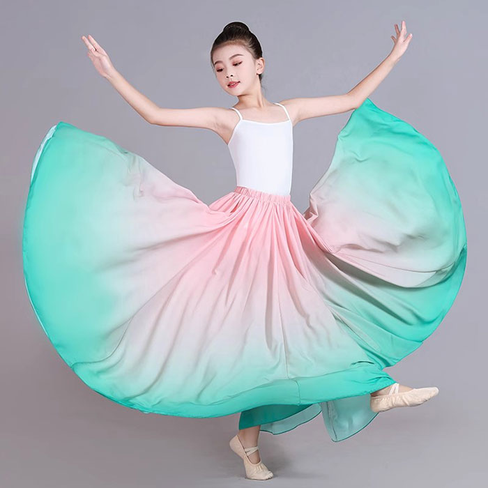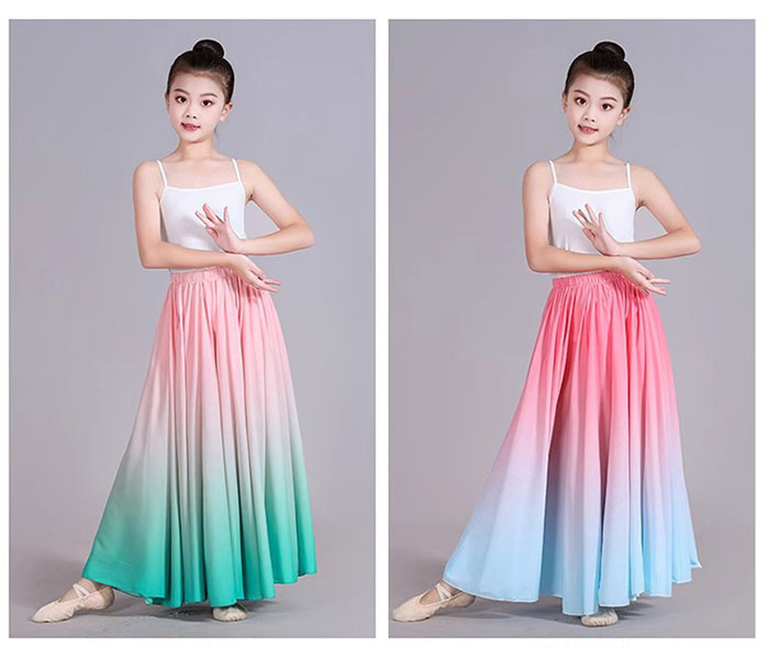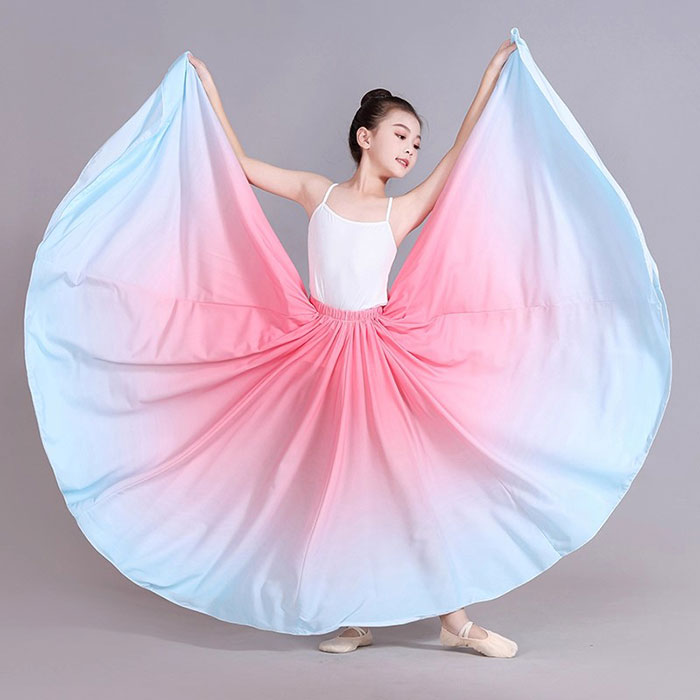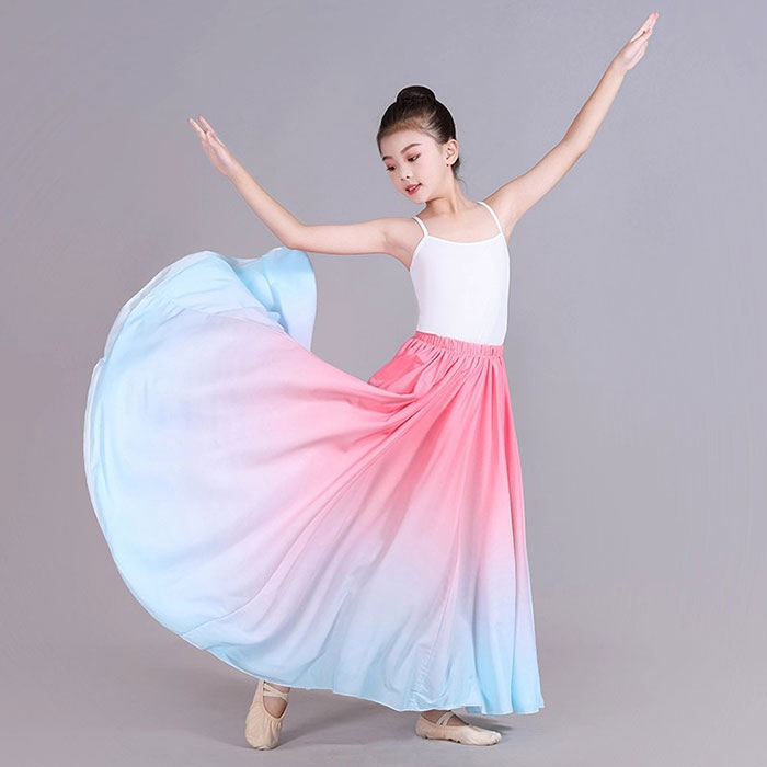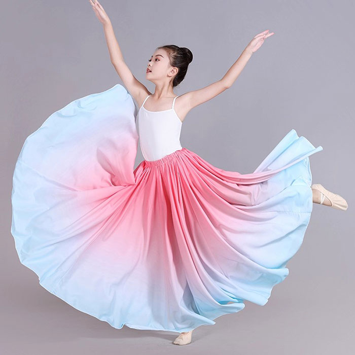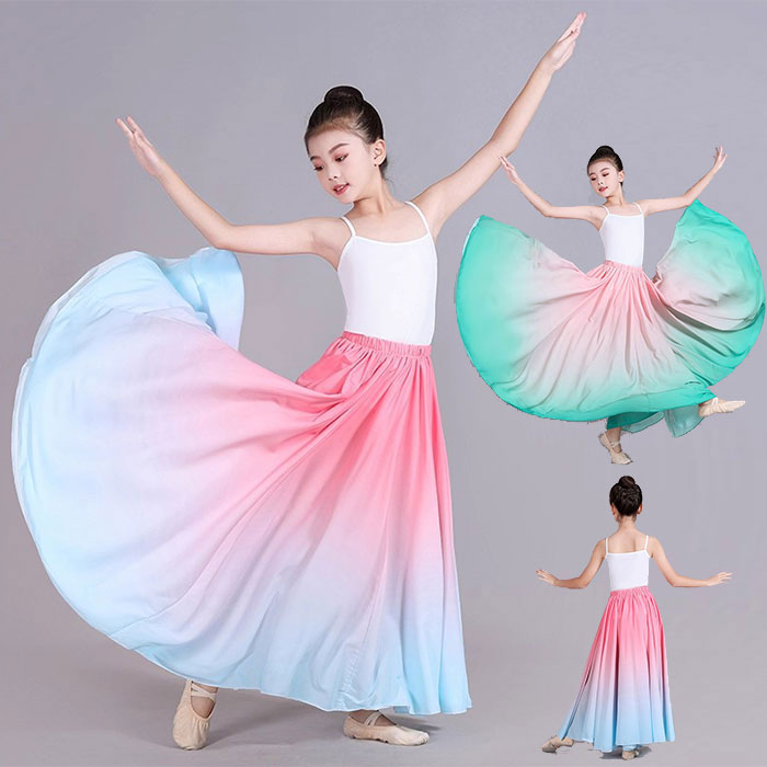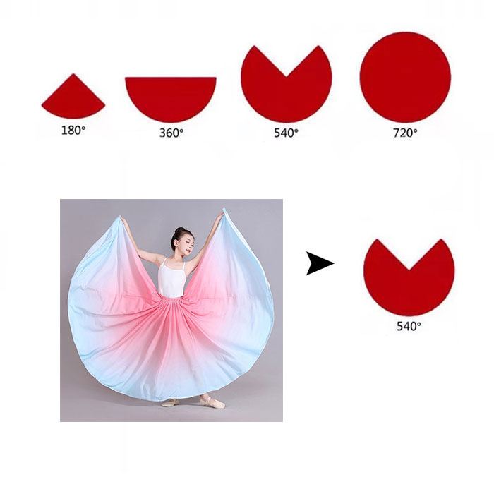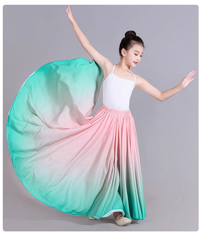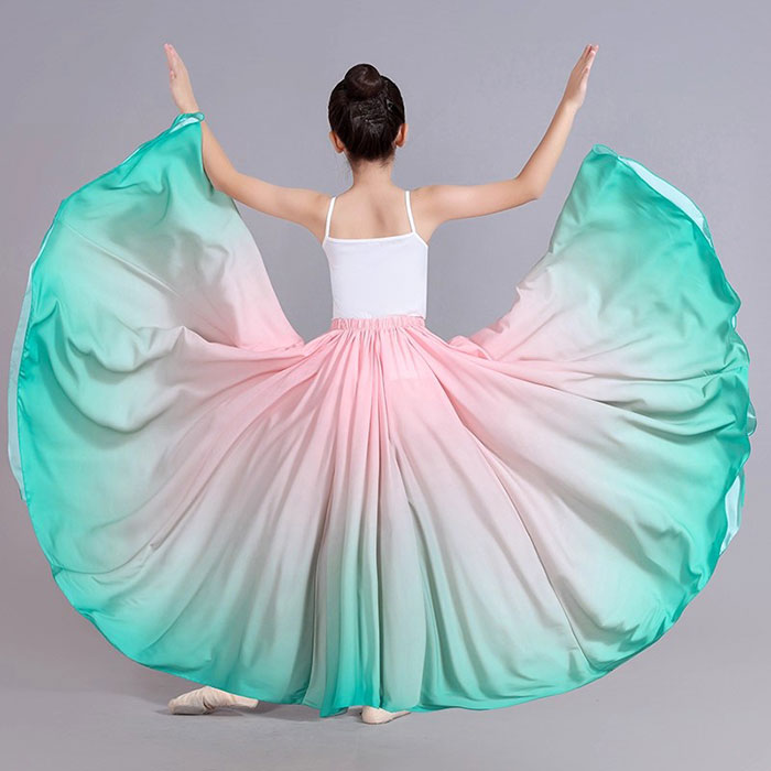 スカート ロング丈 バレエスカート キ 裾【ブルー】 裾【緑】 180度 360度 540度 720度