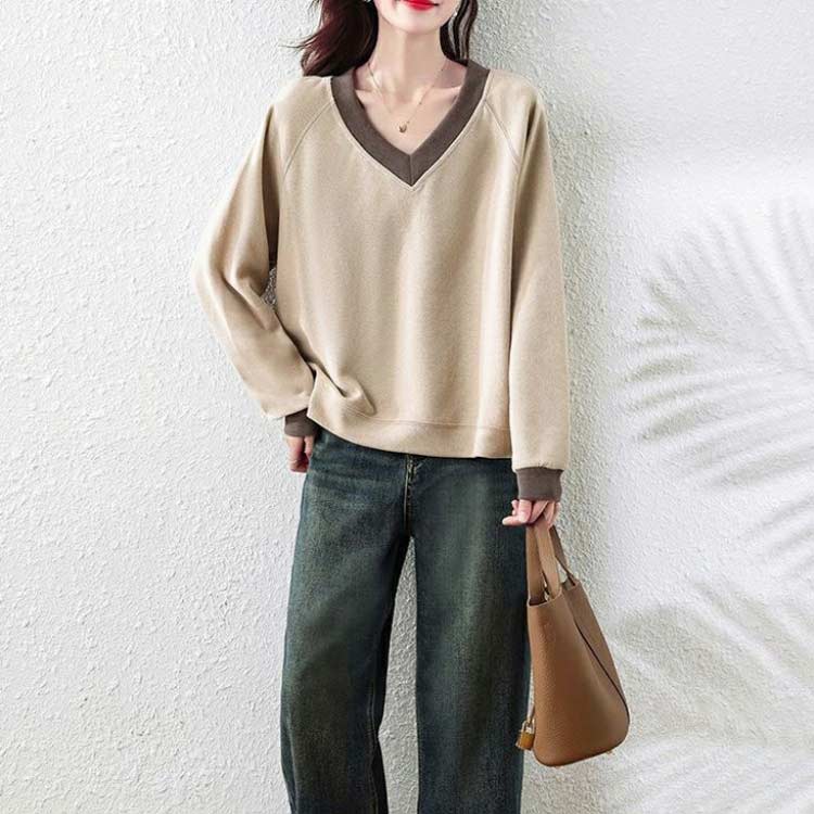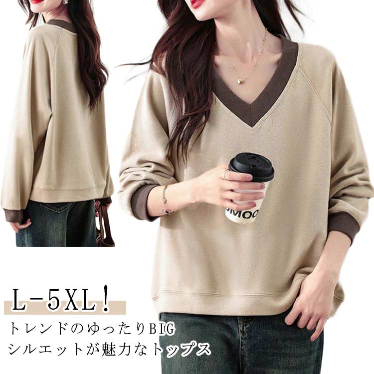Vネック レディース トレーナー 長袖 トップス スウェット トレーナー 特集 L XL 2XL 3XL 4XL 5XL