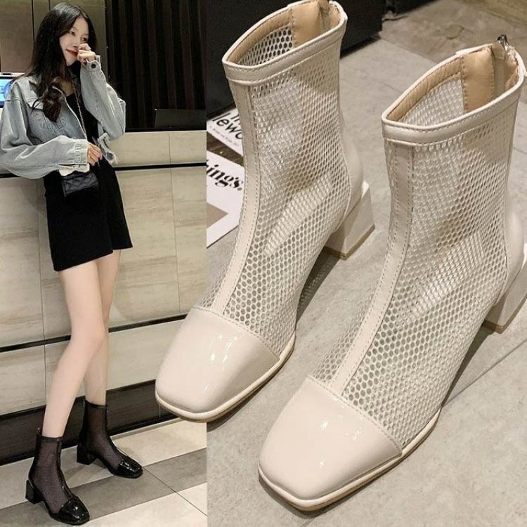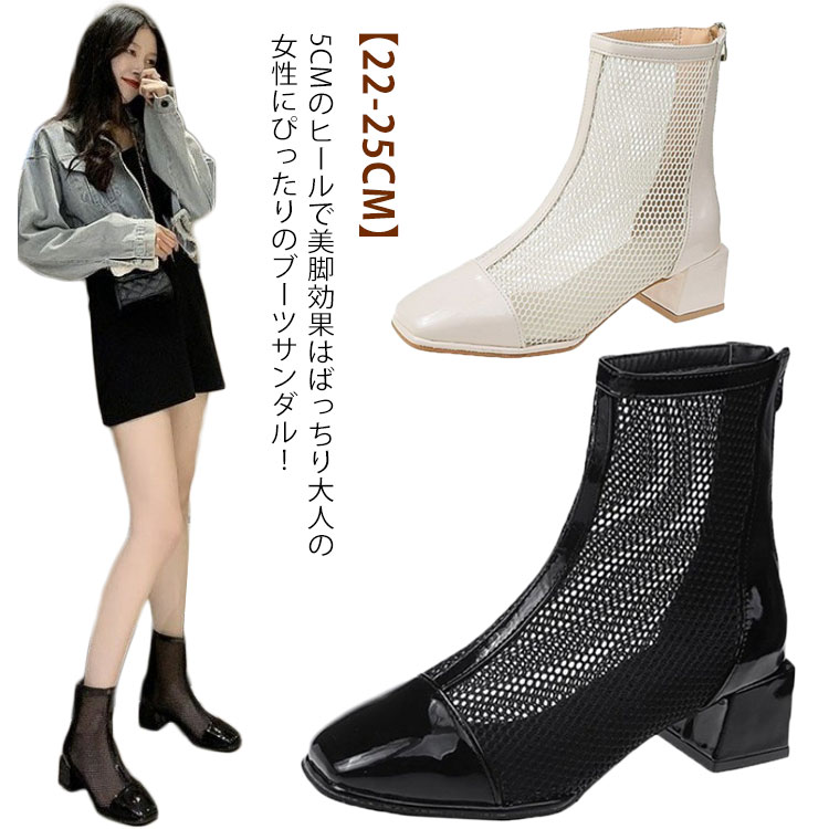 サマーブーツ 痛くない 美脚 メッシュ レディース靴 ブーツ その他 人気 アイボリ ブラック 35(22.5cm) 36(23cm) 37(23.5cm) 38(24cm) 39(24.5cm) 40(25cm)