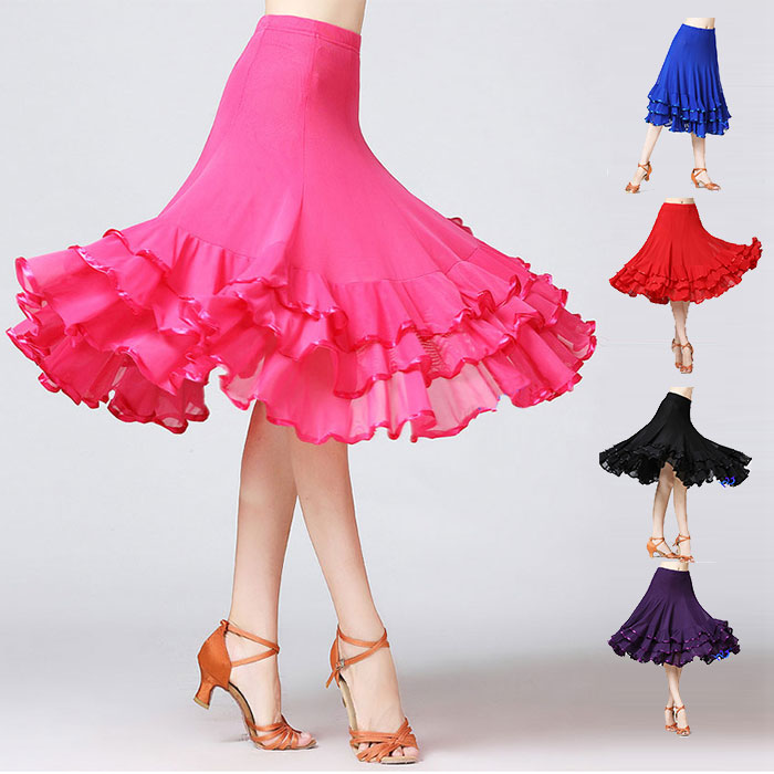 ダンススカート ダンス 衣装 スカート 体操 ダンス 社交ダンス ウェア 通販 M フリー フューシャピンク レッド ロイヤルブルー ブラック パープル