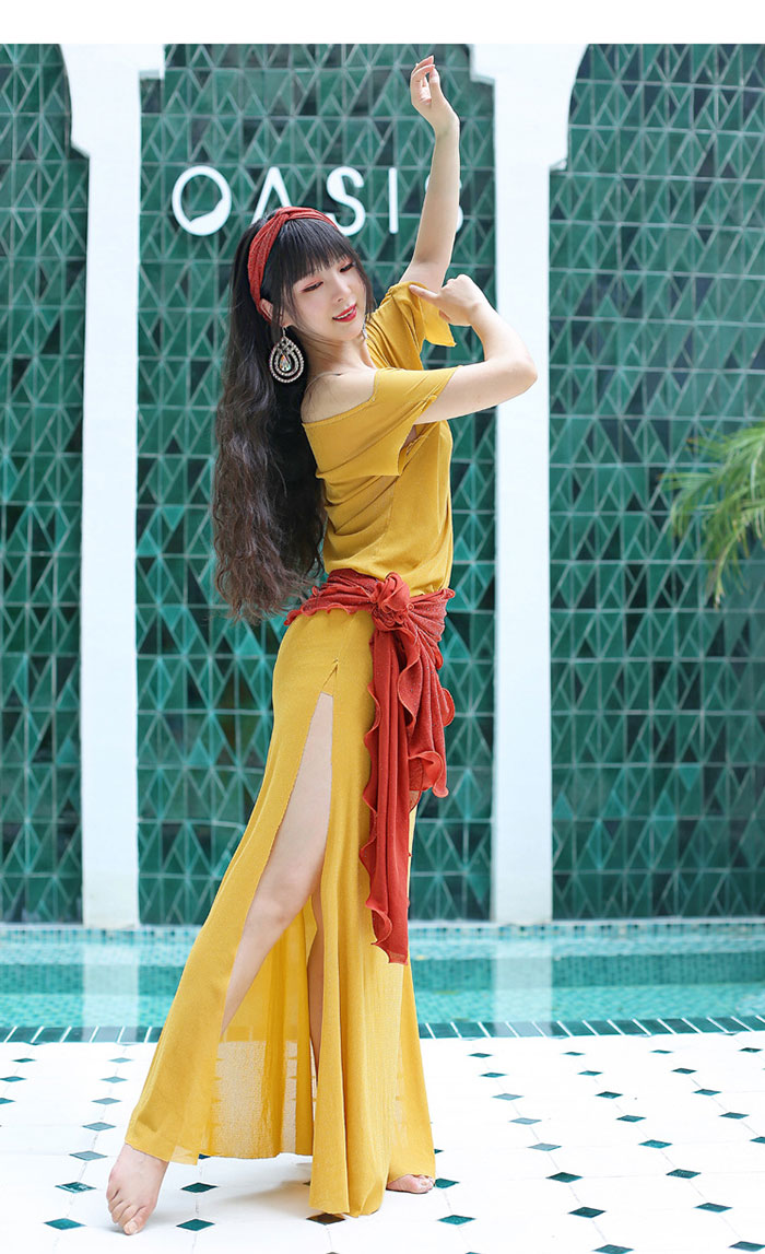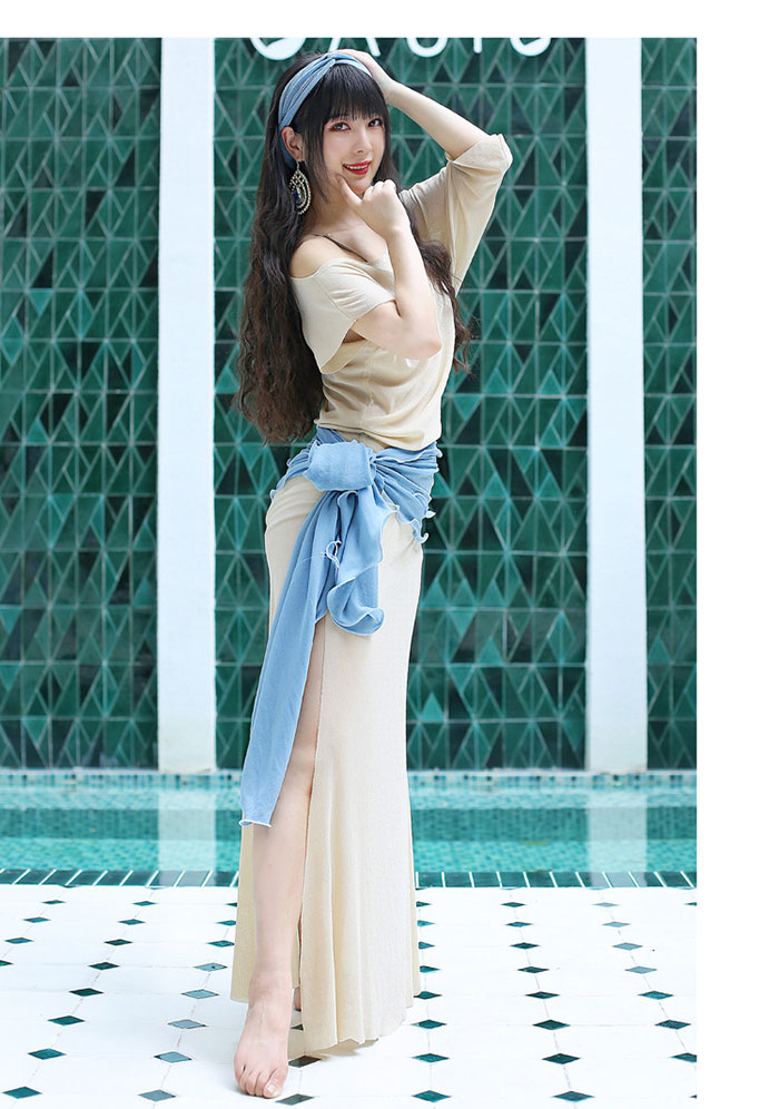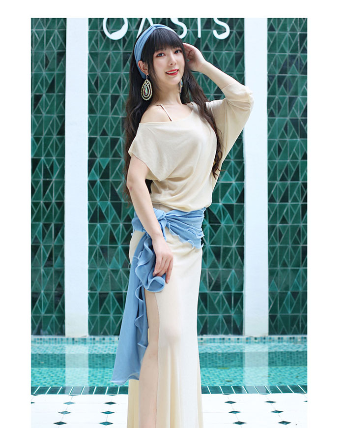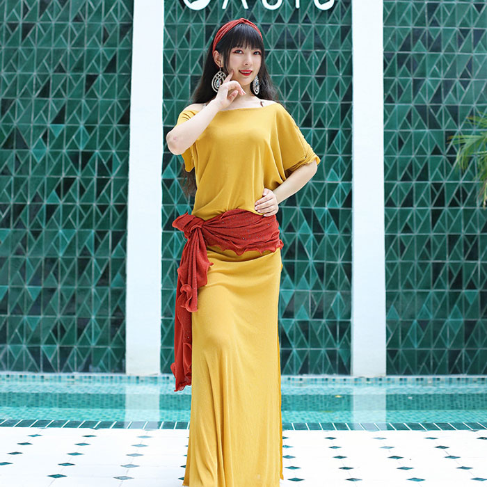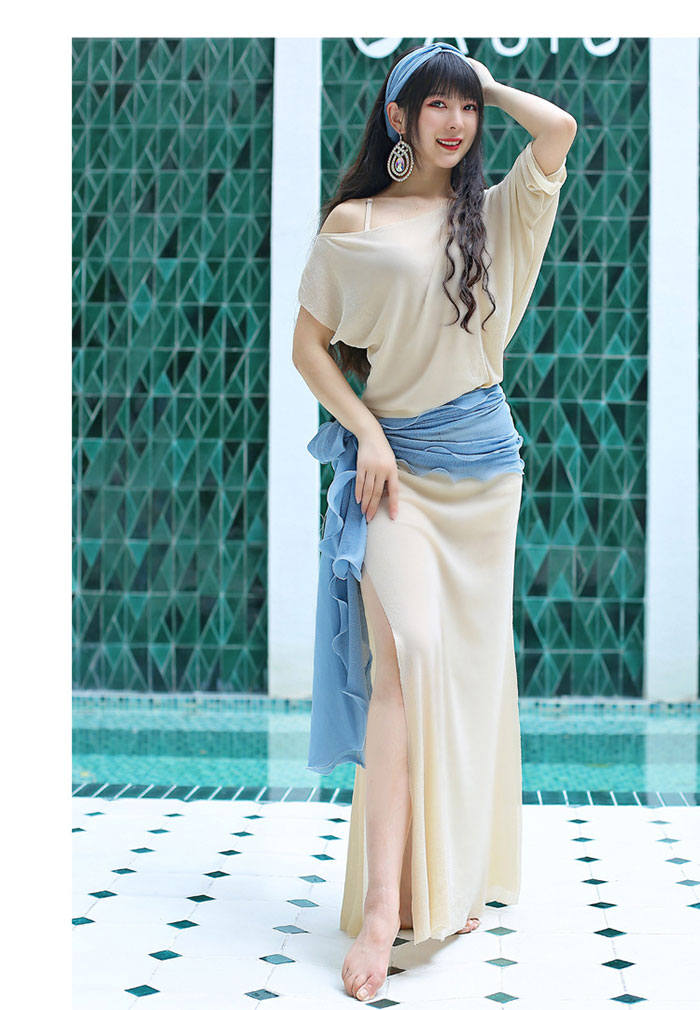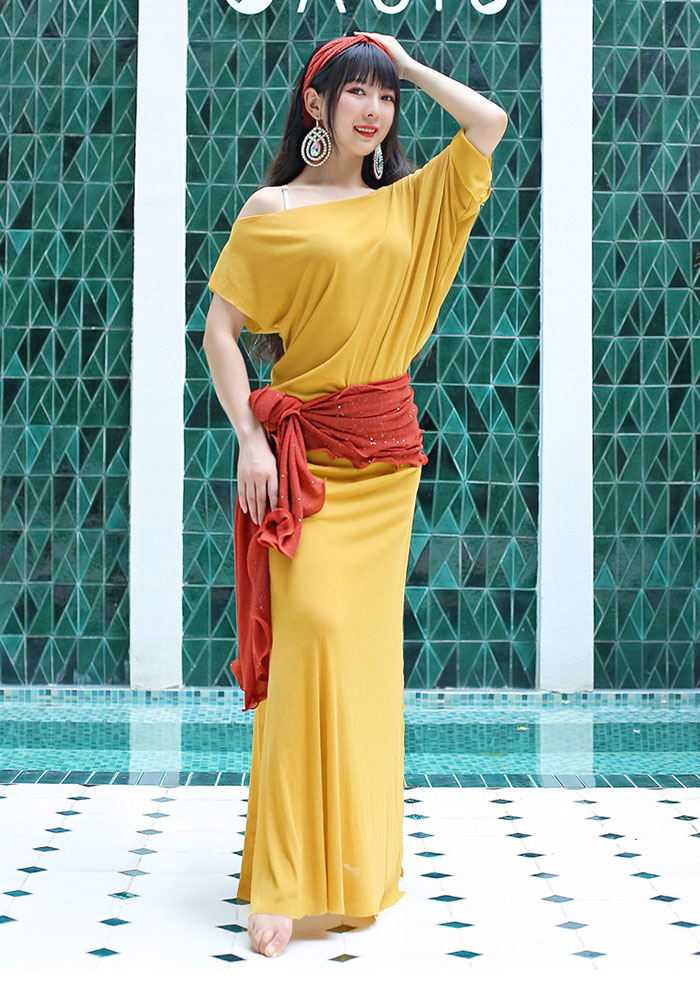 ベリーダンス衣装 ロング丈 ワンピース スポーツ アウトドア 通販 ベージュ イエロー ブルー グリーン パープル