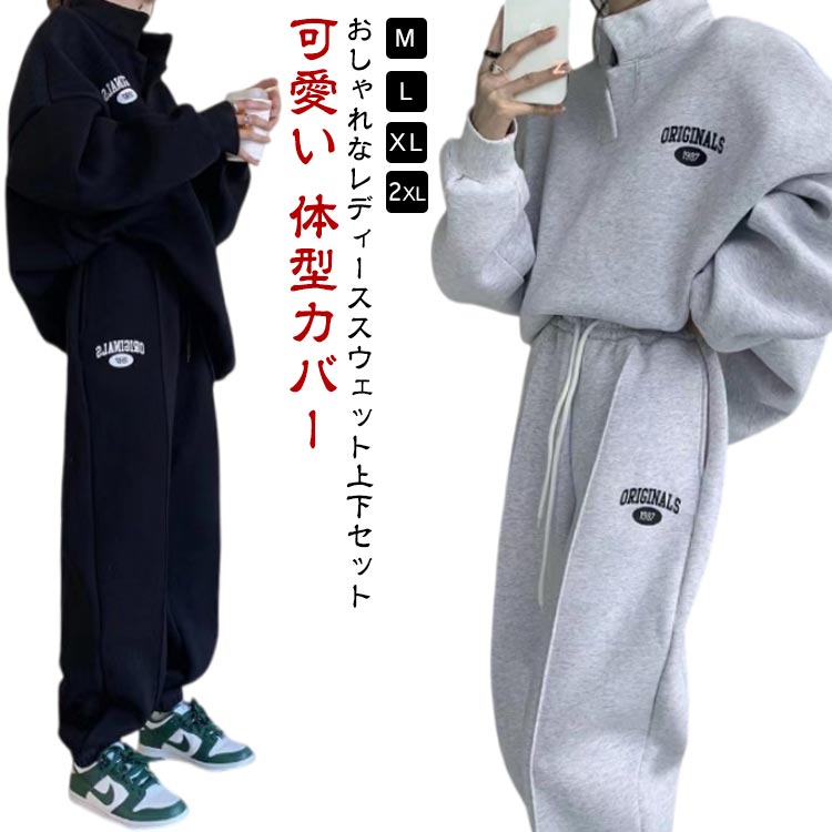セットアップ レディース パーカー プ トップス スウェット トレーナー 通販 ブラックセット グレーセット M L XL 2XL