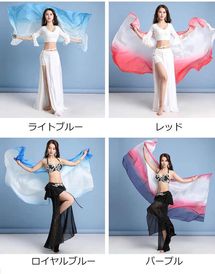 選べる4色 グラデーション シフォンベ 体操 ダンス ベリーダンス ベール 続々入荷中 ライトブルー レッド ロイヤルブルー パープル イエロー