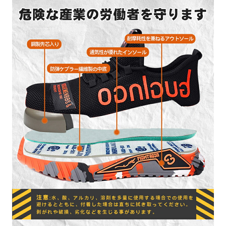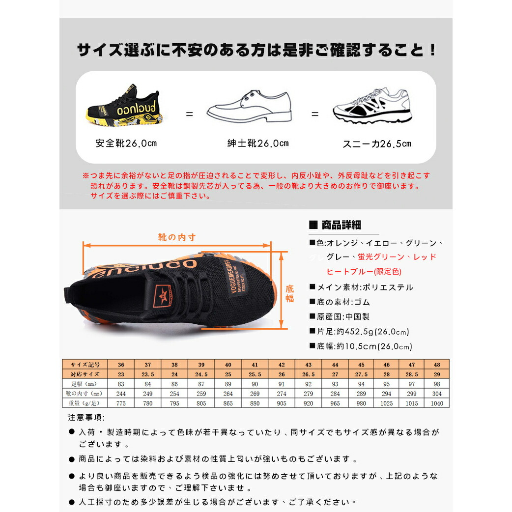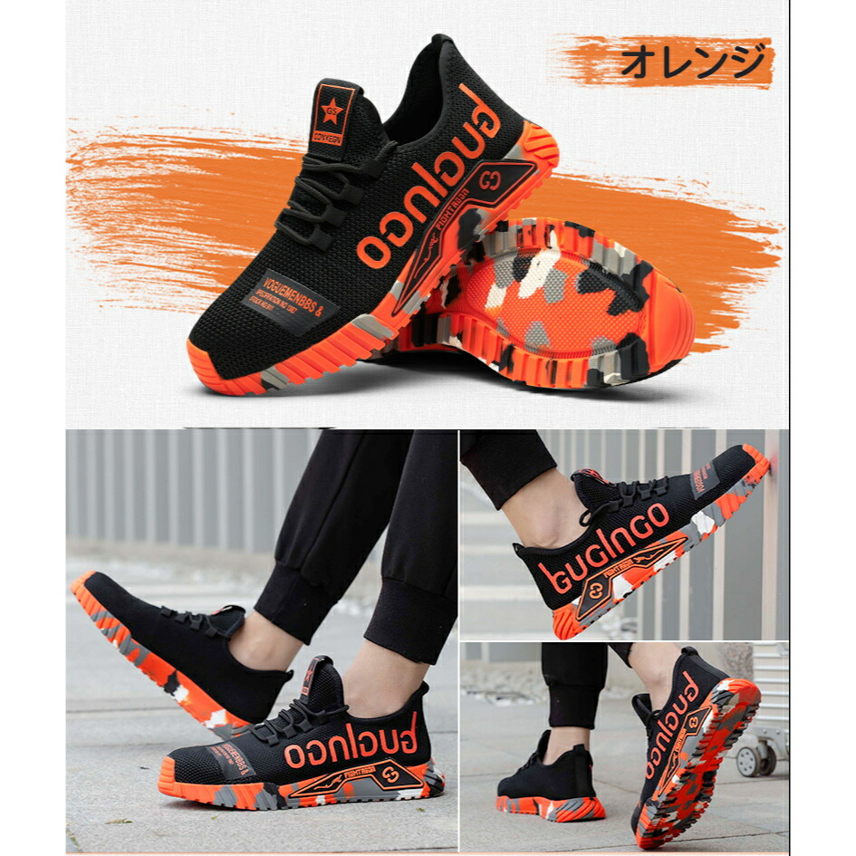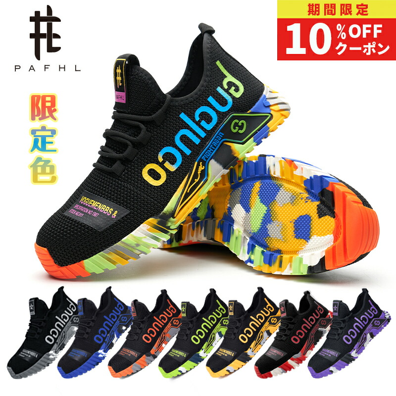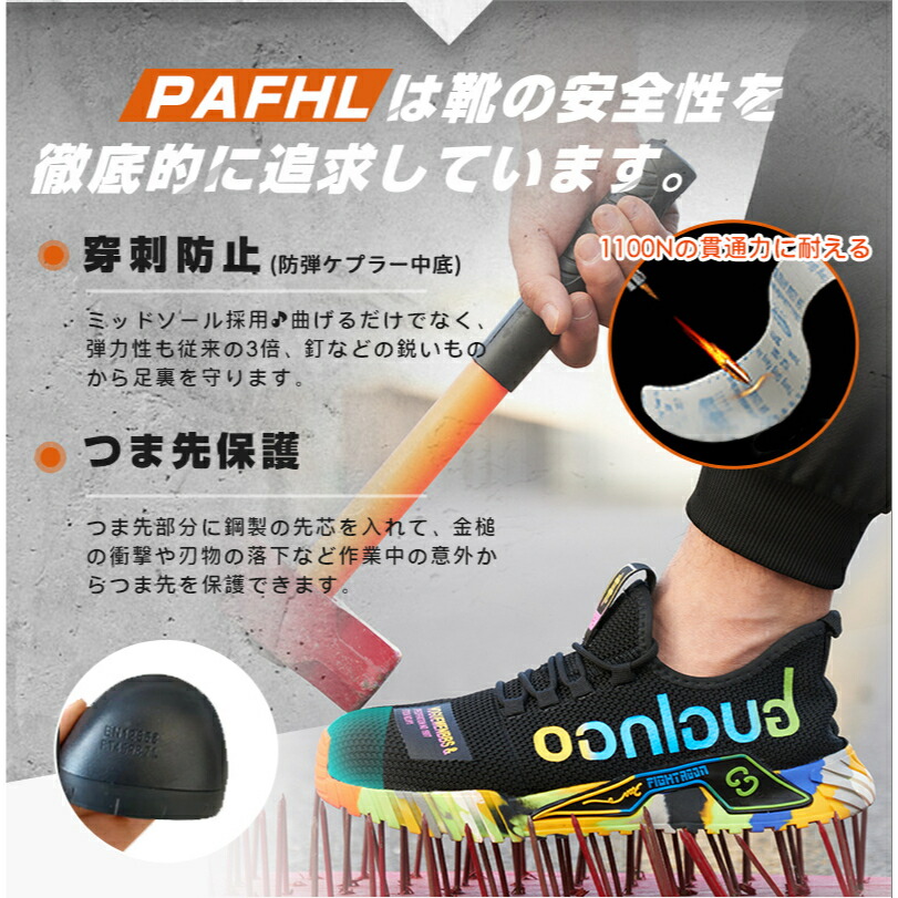 PAFHL 安全靴 あんぜん靴 作業靴 マルチカラー オレンジ グレー 蛍光グリーン パープル イエロー ヒートブルー レッド 23.0 23.5 24.0 24.5 25.0 25.5 26.0 26.5 27.0 27.5 28.0 28.5 29.0