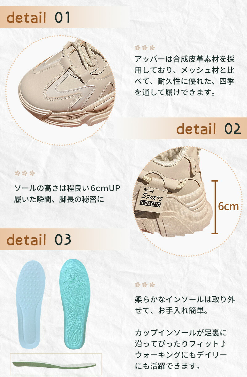 ダッドスニーカー 厚底スニーカー レデ レディース靴 スニーカー 特集 ブラック カーキ ホワイト 22.5 23.0 23.5 24.0 24.5 25.0