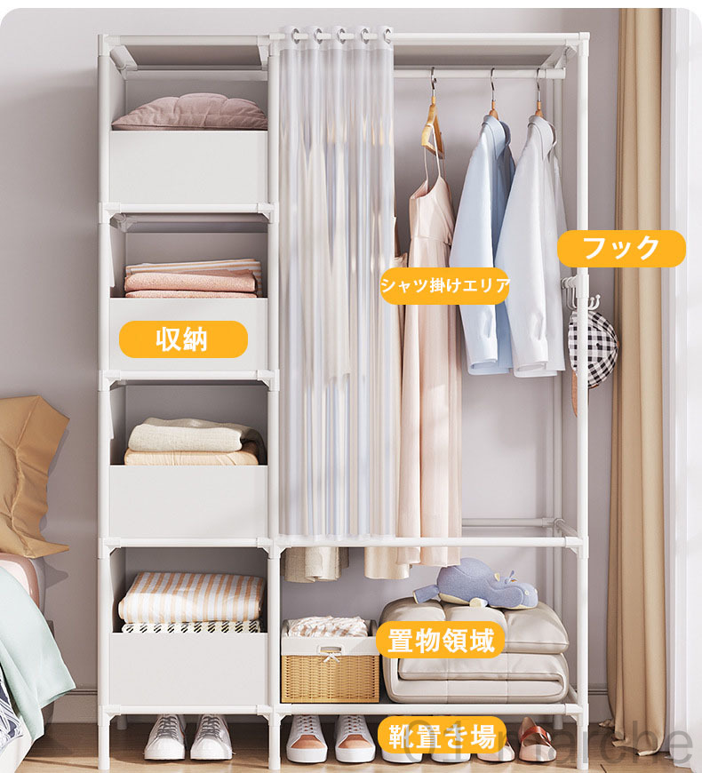 ワードローブ クローゼット ハンガーラ ホワイト ブラック 62*43*166cm 105*45*170cm