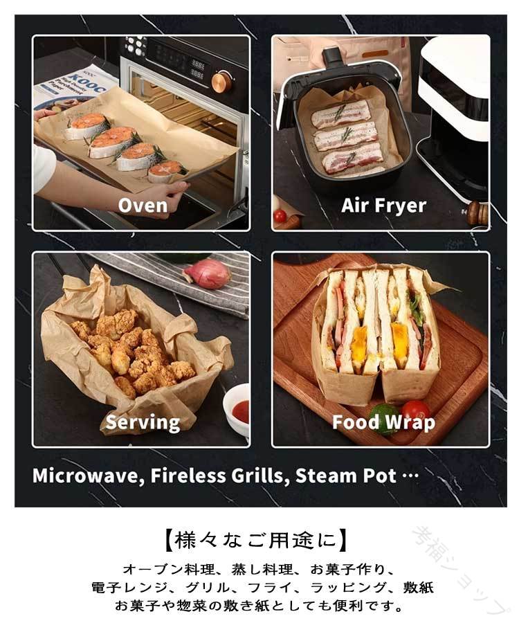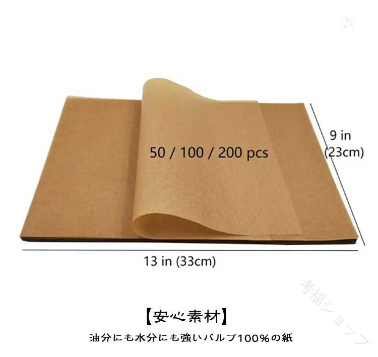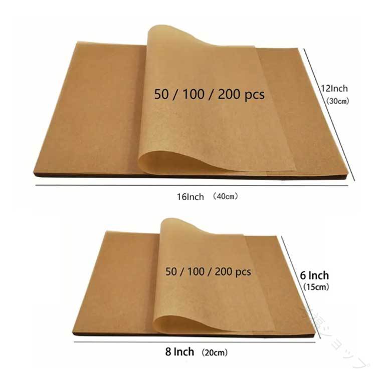 20*15cm(400枚セット)40*30cm(200枚セット)23*33cm(250枚セット)【後片付けを簡単に】この調理ペーパーは、オーブンや電子レンジで使用できます。表面にはシリコン加工が施されているため、油を使わずに食材をくっつけることなく調理できます。調理器具や食器を汚さず、後片付けが簡単です。また、パンやクッキー、魚や肉を焼く際にもくっつかず、非常に便利です。無漂白のクッキングペーパーは自然な風合いがあり、焼き上がった料理をトレーにそのまま置いてもおしゃれです。オーガニックデリなどで活躍します。【様々なご用途に】オーブン料理、蒸し料理、お菓子作り、電子レンジ、グリル、フライ、ラッピング、敷紙お菓子や惣菜の敷き紙としても便利です。【安心素材】油分にも水分にも強いパルプ100%の紙【再利用可能】このクッキングペーパーは汚れにくいので、クッキーや他の焼き菓子を調理する際には2~3回の再利用が可能です。油を控えたい焼き物調理、フライパンを汚したくない時などにもおすすめです。