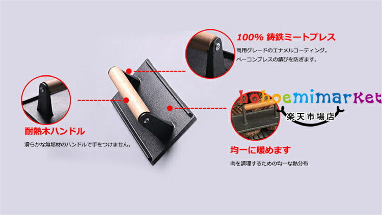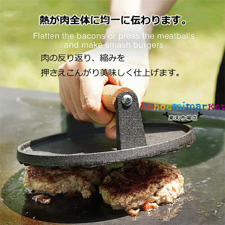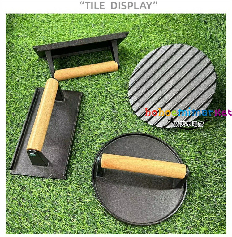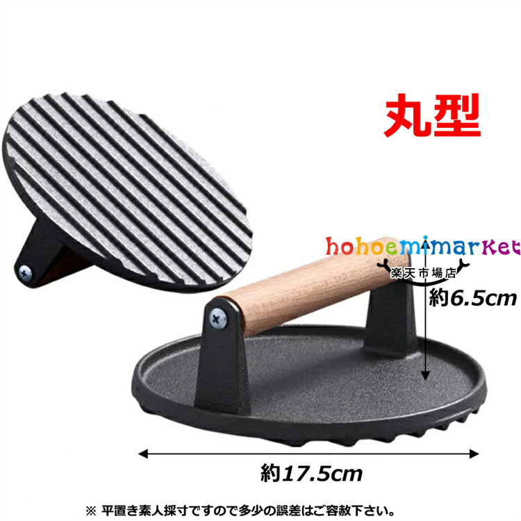 重し ミートプレス 肉 鋳鉄 ハンバー 丸型 長方形 (丸型+長方形)2点
