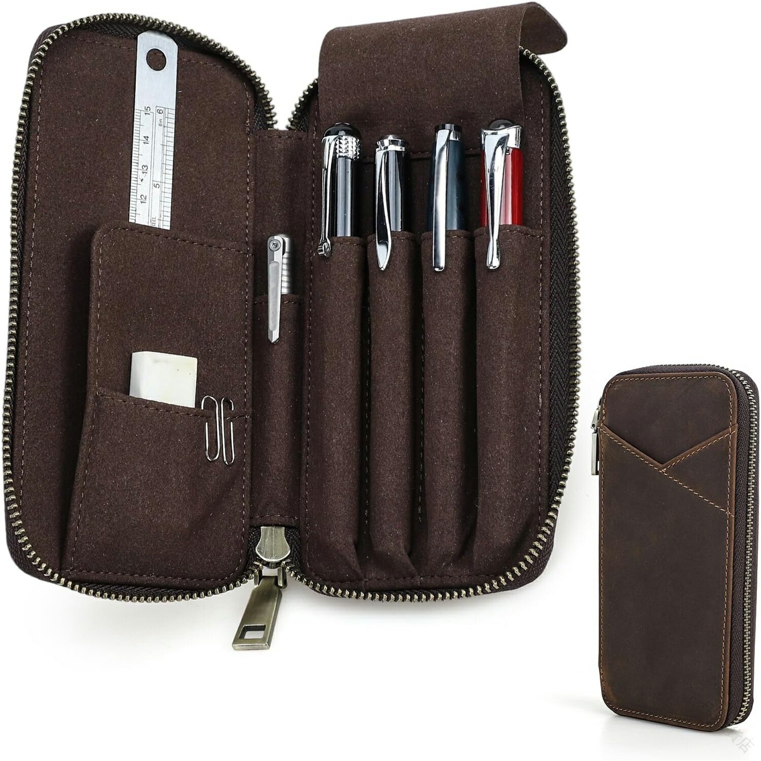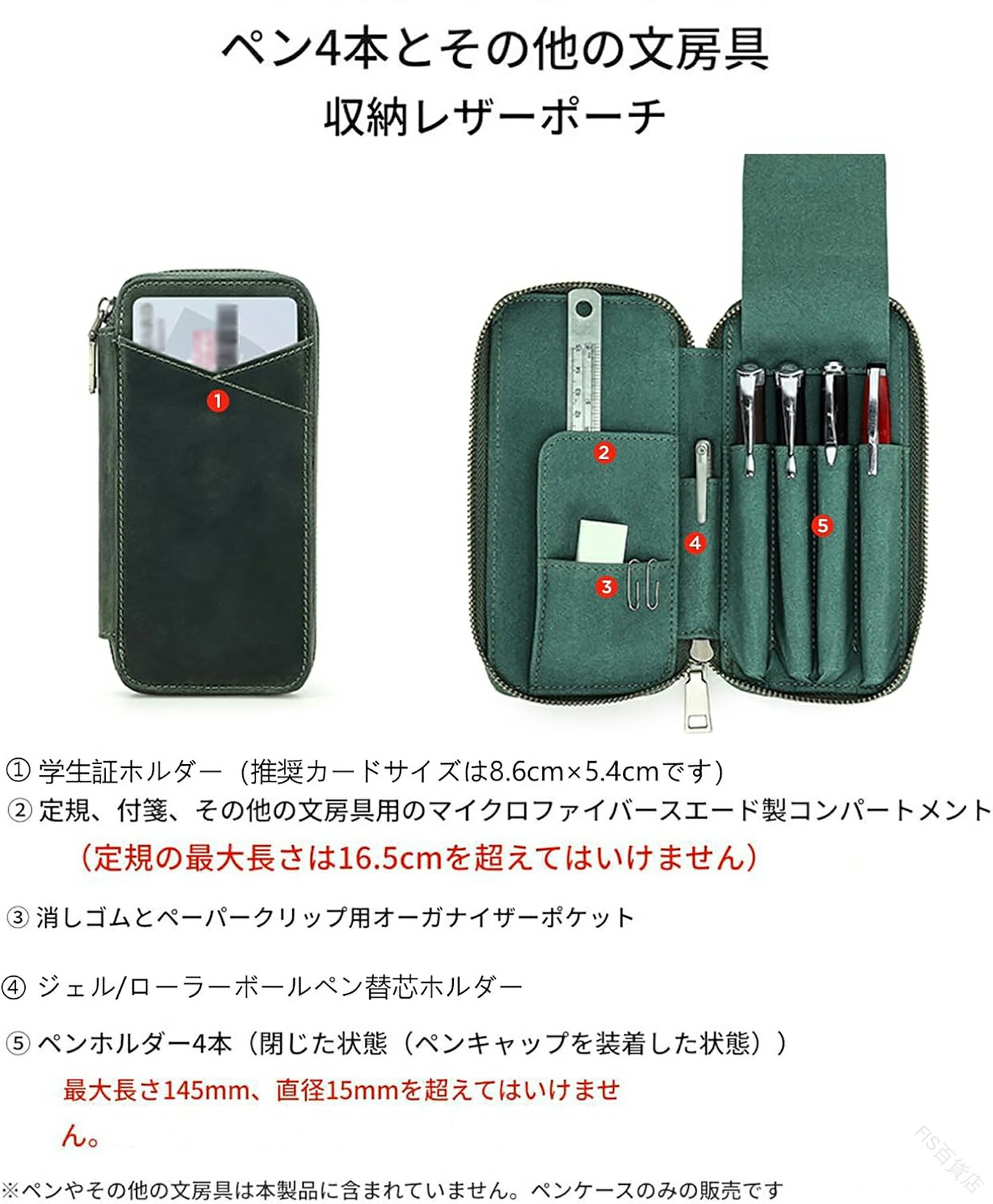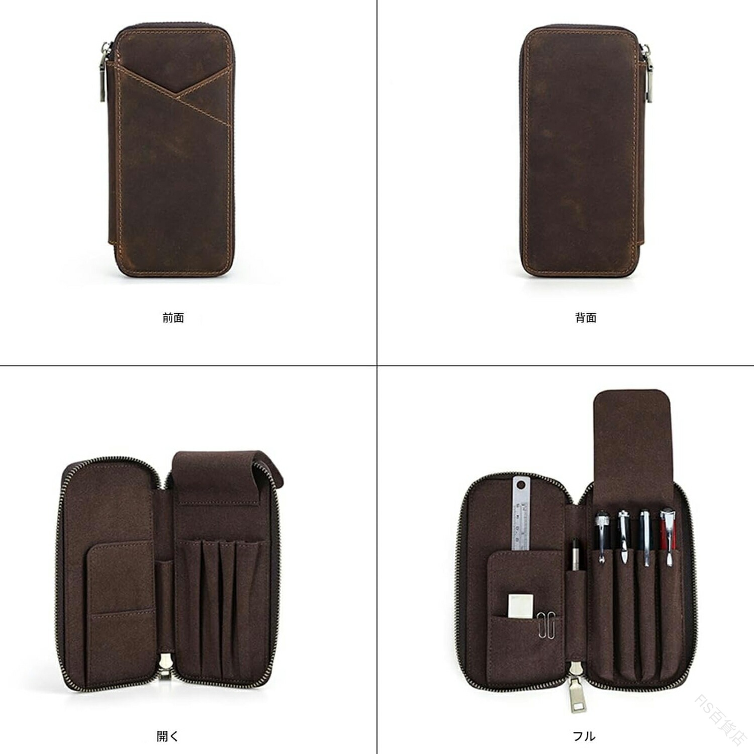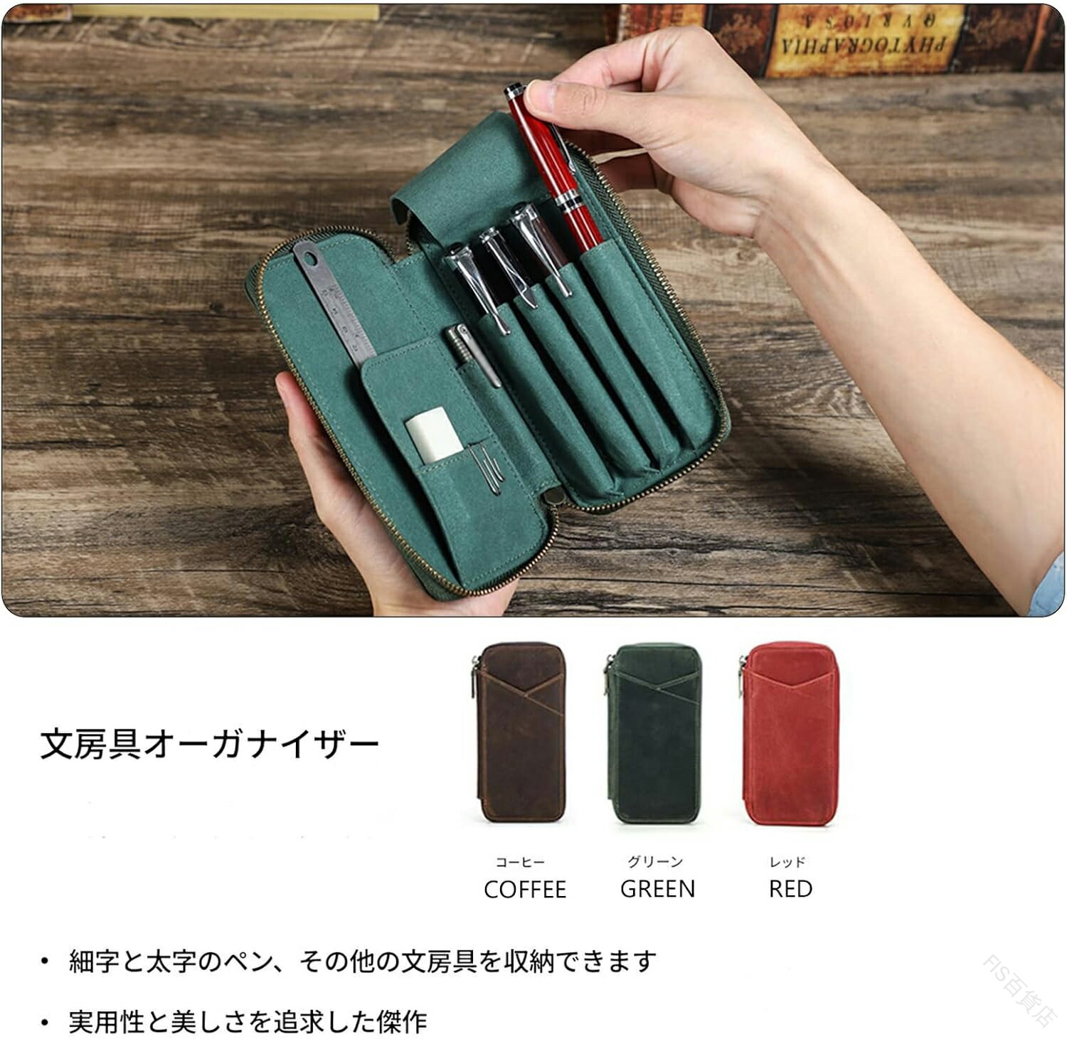 ペンケース 男女兼用 本革 フルグレイ コーヒー グリーン レッド