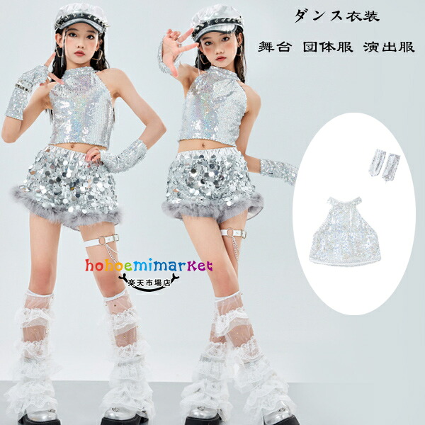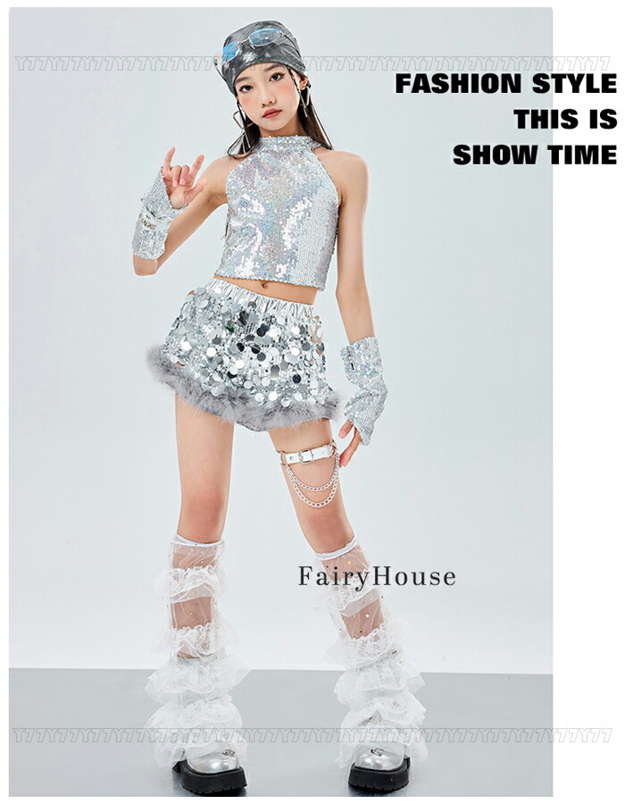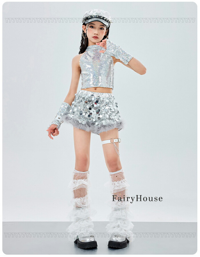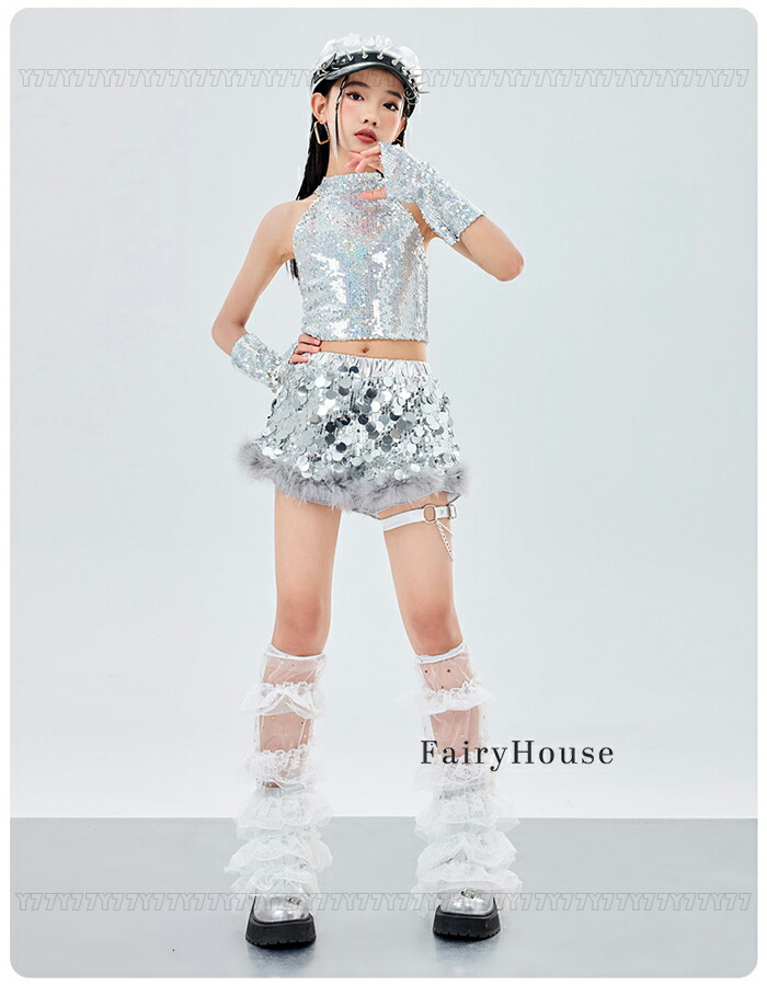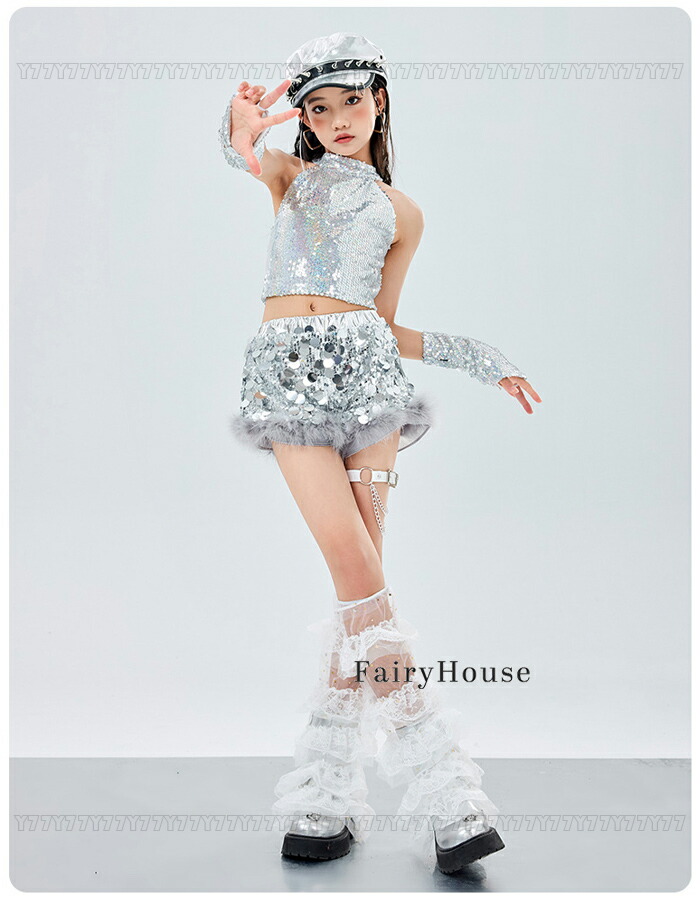 ダンス衣装 シルバー スパンコール ベ キッズ トップス ベスト 新登場! ベスト+カフス ショーツ単品 110 120 130 140 150 160 170 180