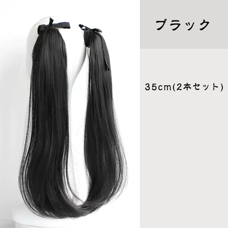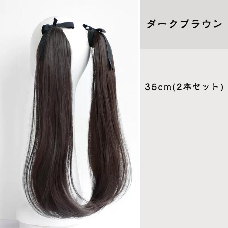 ポニーテール エクステ ウィッグ リボ ブラック ダークブラウン ライトブラウン 35cm(2本セット) 55cm(2本セット)