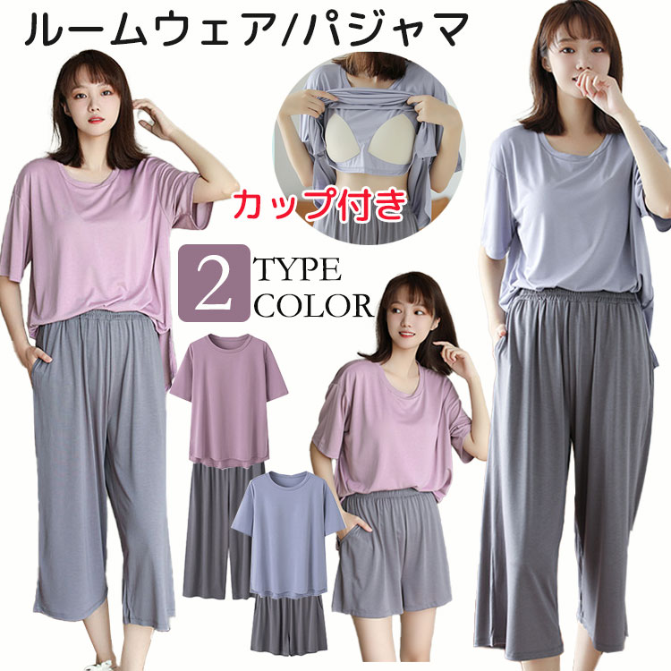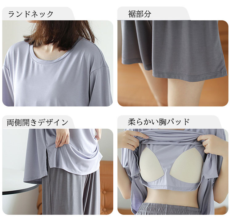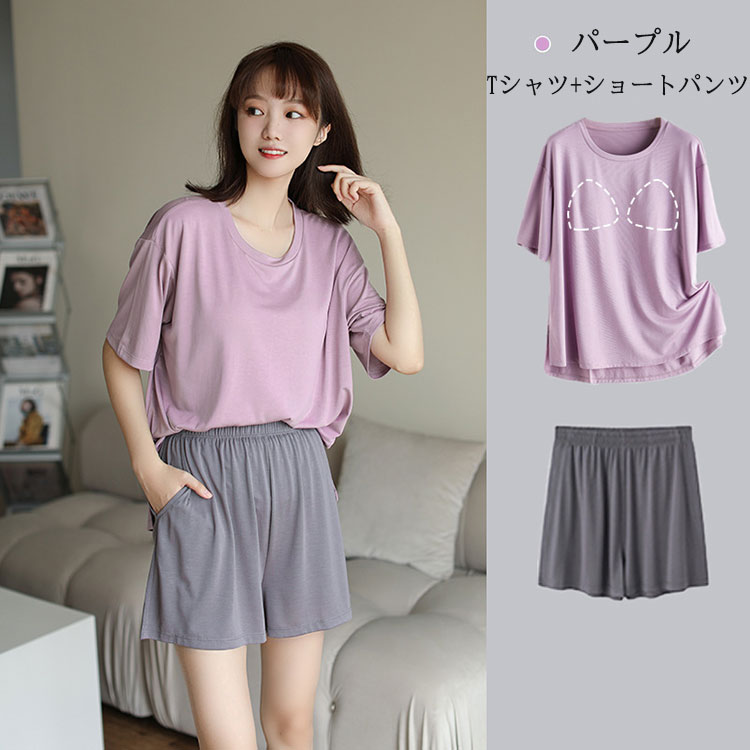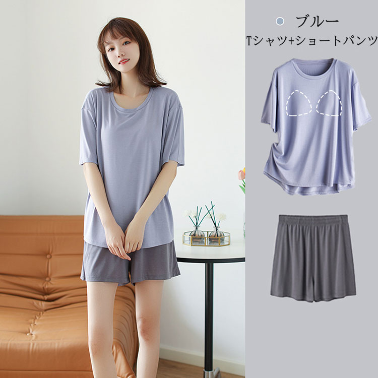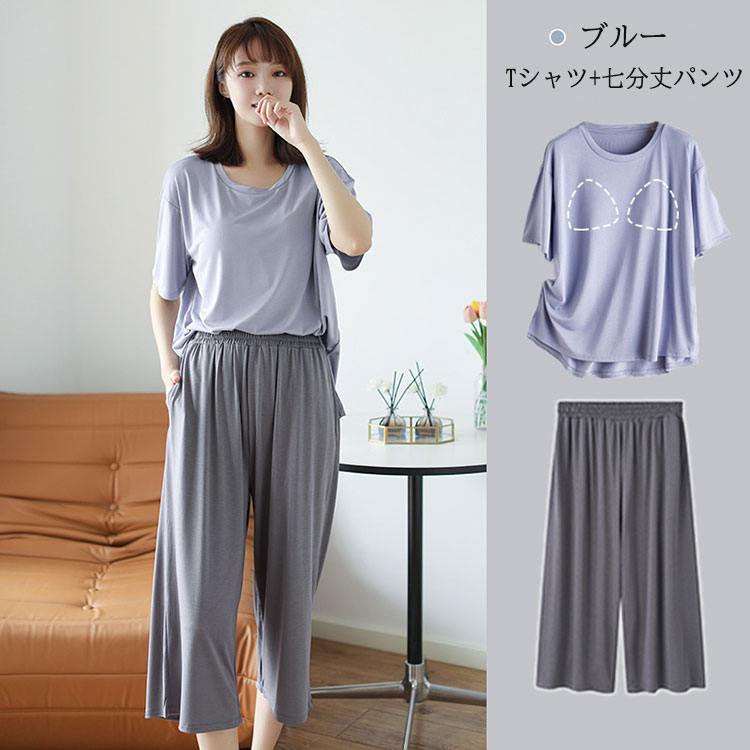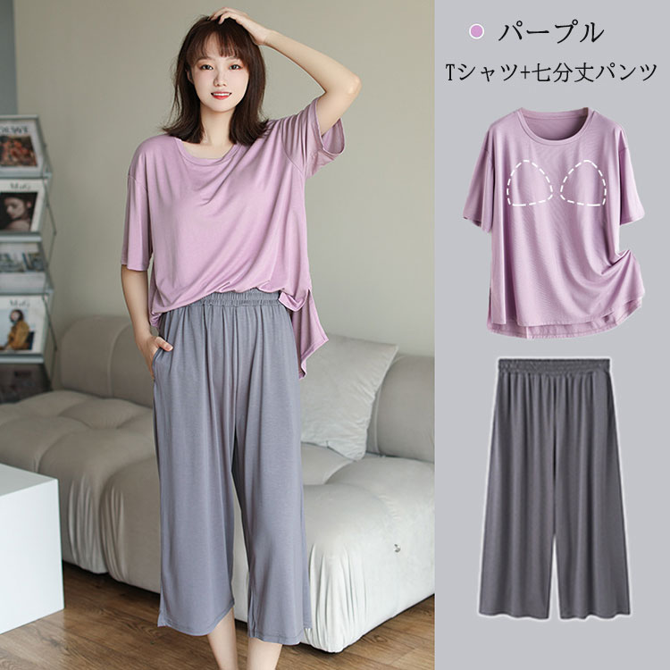 ルームウェア パジャマ レディース セ レディース ナイトウェア ルームウェア ルームウェア 上下セット 特集 ブルー(ショートパンツ) ブルー(七分丈パンツ) パープル(ショートパンツ) パープル(七分丈パンツ) M L XL 2XL