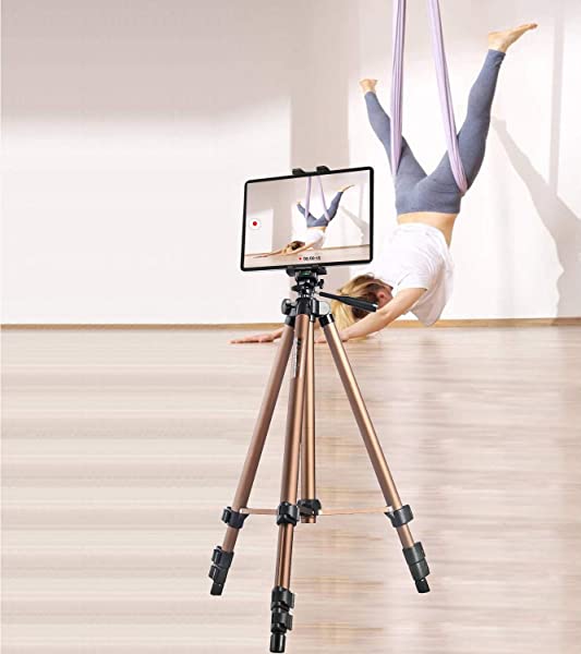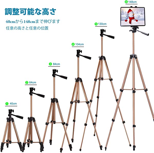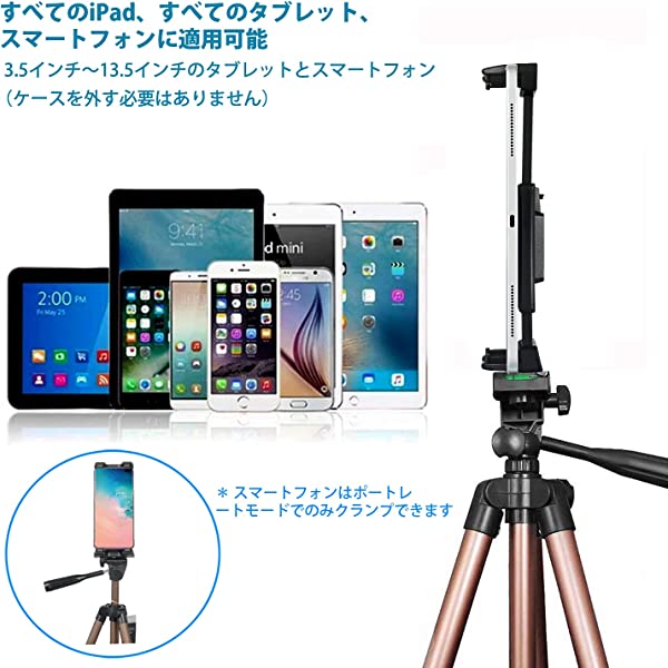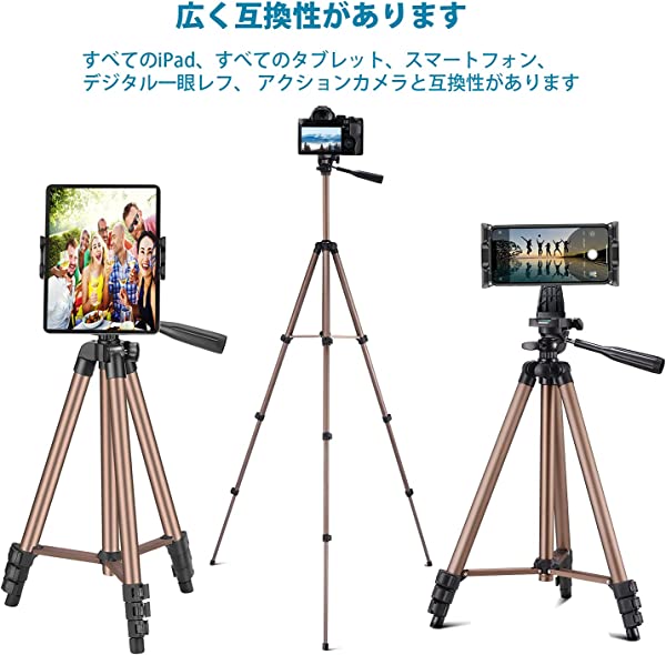 IPad 三脚 タブレット三脚スタンド 51インチ 高さ調節可能 アルミニウムマウントホルダー iPad Pro 12.9 11 10.5 iPad Air iPad Mini Surface Nexus Galaxy Tab 3.5~13.5インチ スマホ タブレット シャンパン色