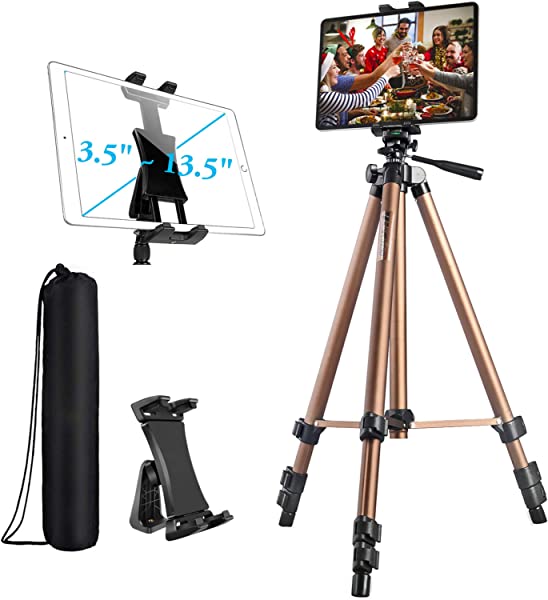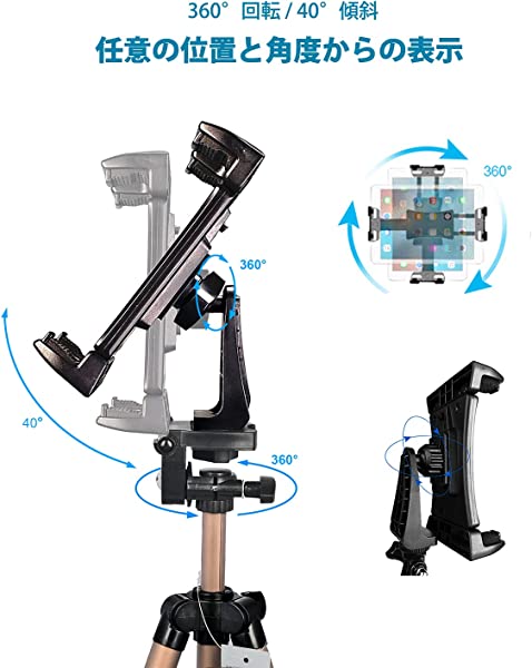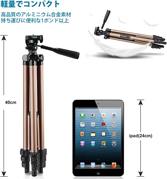 【軽量&ポータブル】: iPad三脚マウントは高品質のアルミニウム製、シャンパン仕上げ加工。 重量はわずか535gで、講義、教室でのプレゼンテーション、トーナメント、旅行、vlogging、自撮り、ポートレートや風景撮影、Facebook Twitchライブストリーミング、Facetimeなどに適して