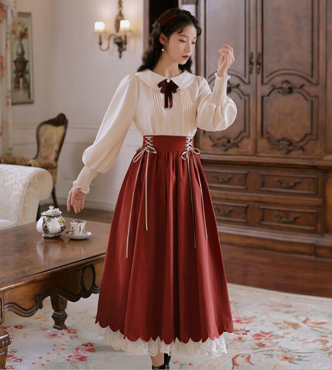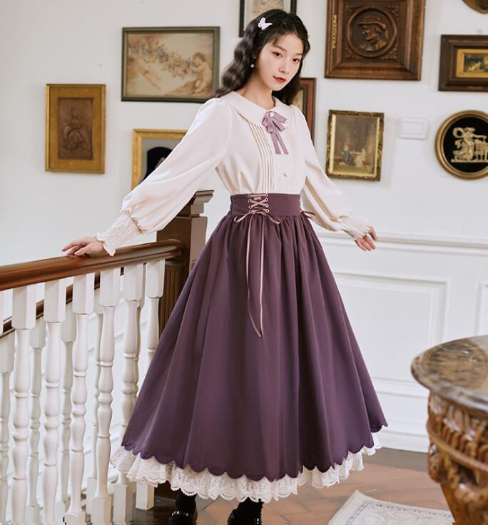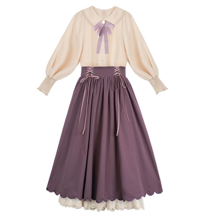 レトロ ワンピース 森ガール系 ブラウ ワンピース 新登場! S M L XL ワイン グリーン パープル