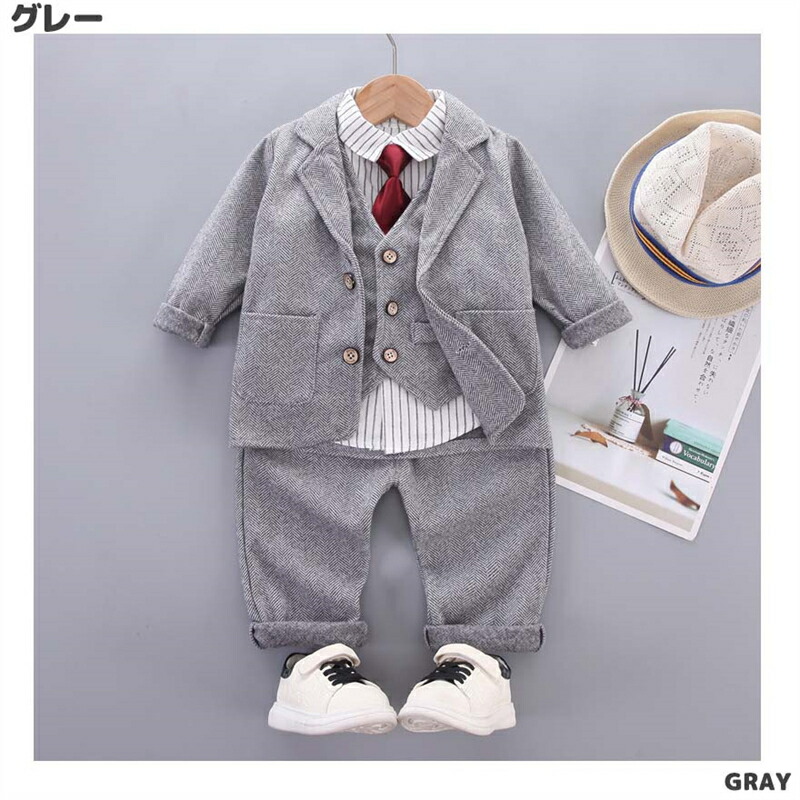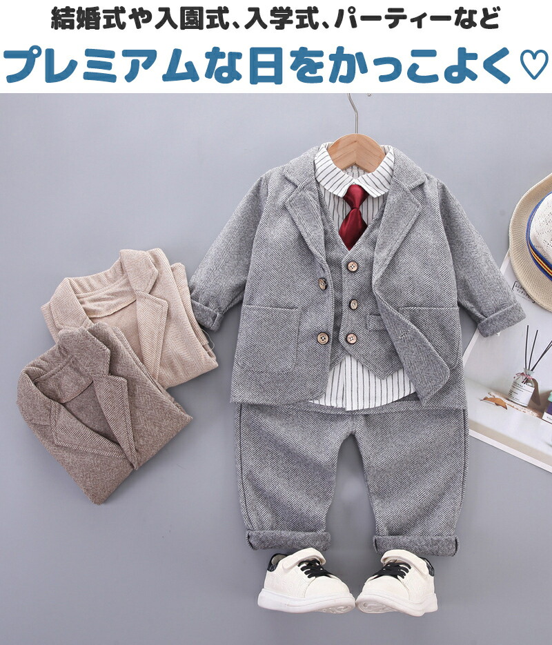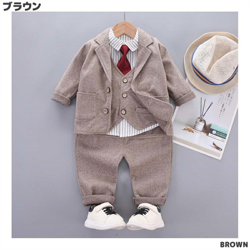 フォーマル 4点セット 子供スーツ キ キッズ ベビー マタニティ 豊富な品揃え ベージュ ブラウン グレー 80 90 100 110