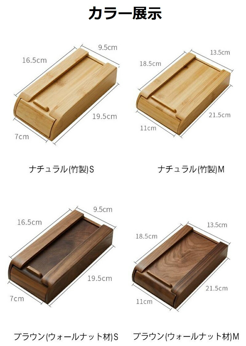 木製 収納トレー 収納ケース 便利収納 ナチュラル(竹製) ブラウン(ウォールナット材) S M