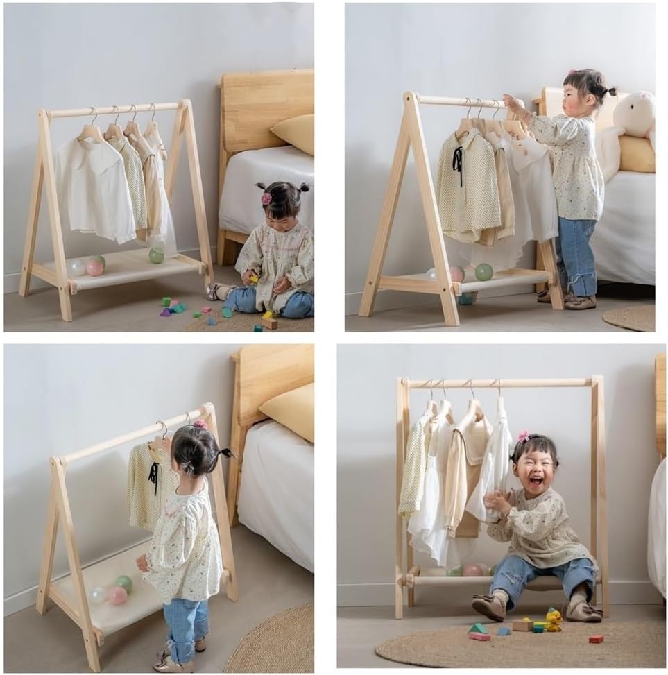 ハンガーラック 子供用 ハンガー 木製 ナチュラル ブラウン
