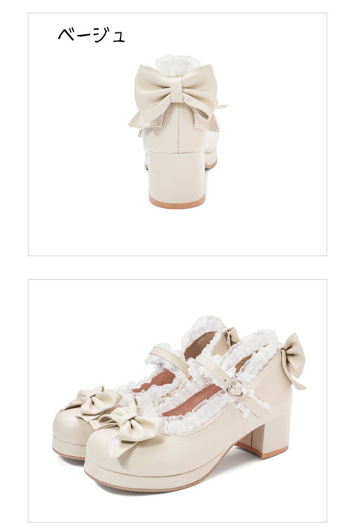 パンプス ヒール ロリータ 靴 Lol 靴 続々登場 ブラック ベージュ ピンク 35(内寸22.5cm) 36(内寸23cm) 37(内寸23.5cm) 38(内寸24cm) 39(内寸24.5cm)