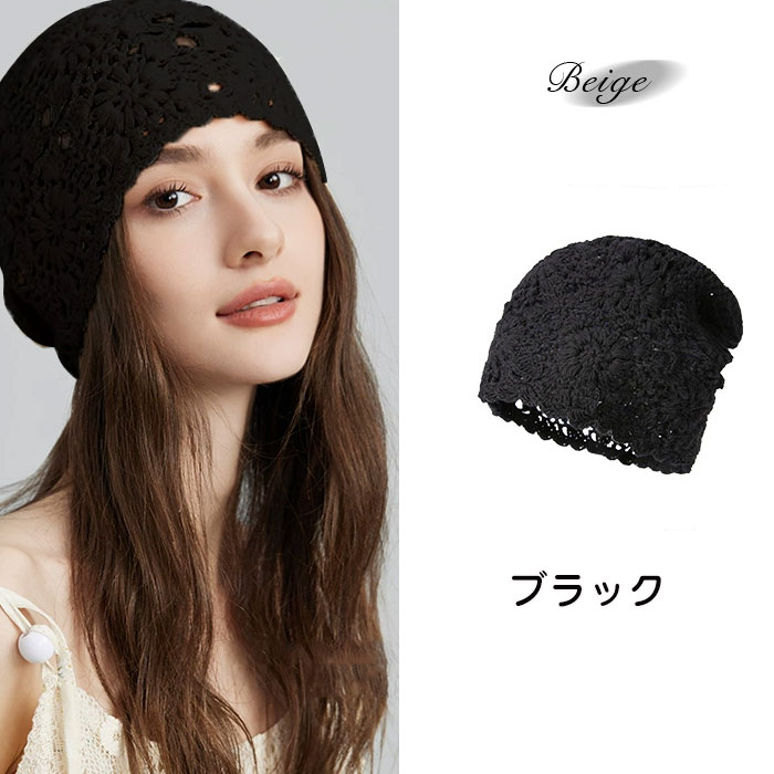 かぎ針編みニット帽 レディース サマー 帽子 レディース帽子 麦わら帽子 続々入荷中 ベージュ ブラック ブルー