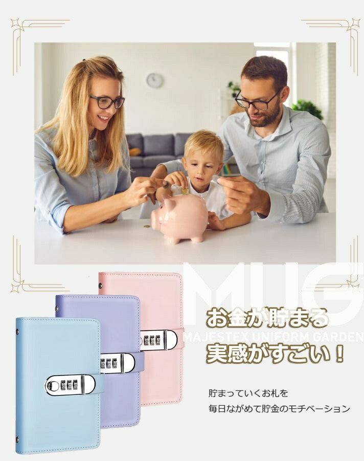 お札封筒貯金 ダイヤルロック付き 10 日用品雑貨 文房具 手芸 特集 ピンク ブルー パープル ブラック イエロー グレー レッド グリーン ブラウン
