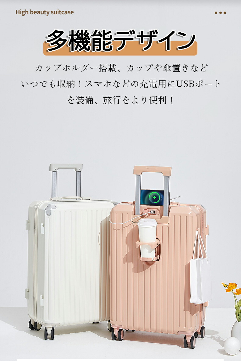 スーツケース USBポート付き キャリ バッグ スーツケース キャリーバッグ 人気 ブラック【USB充電口1個】 アイボリー【USB充電口1個】 イエロー【USB充電口1個】 スモッグブルー【USB充電口1個】 ライトブルー【USB充電口1個】 ピンク【USB充電口1個】 S(20inch) M(24inch) L(26inch)